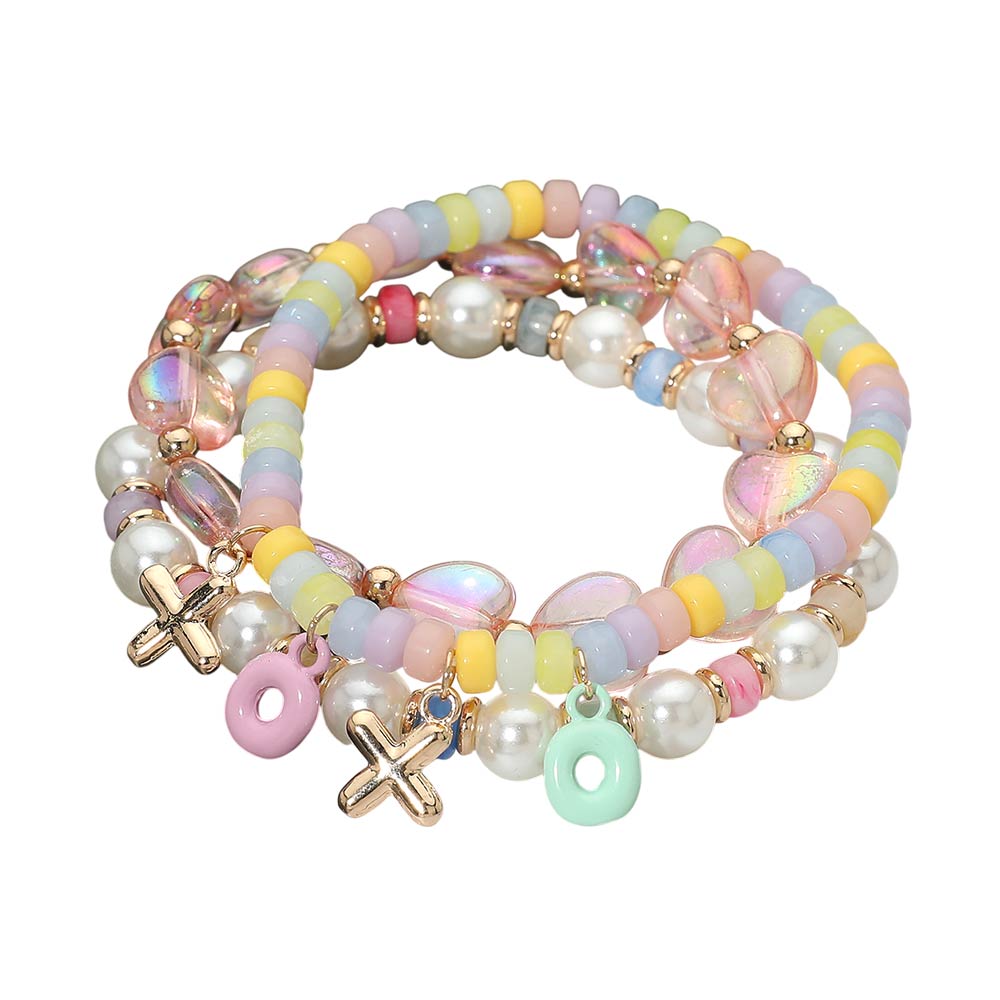 Details • Size : 1.5" H • Stretchable • Charming stretch bracelet set featuring playful XO charms, mixed bead textures, and layered styling appeal. Designed for easy wear and effortless stacking, this multi-piece bracelet set adds a fun, giftable accent to everyday looks, seasonal collections, party outfits, and boutique accessory assortments that attract trend-focused shoppers. • Lead and Nickel Compliant