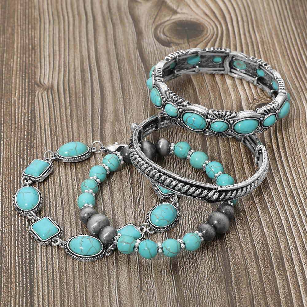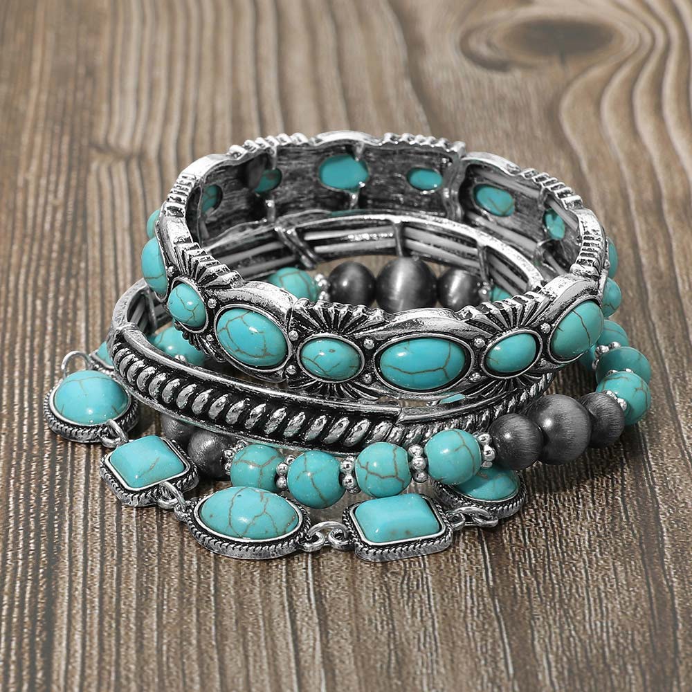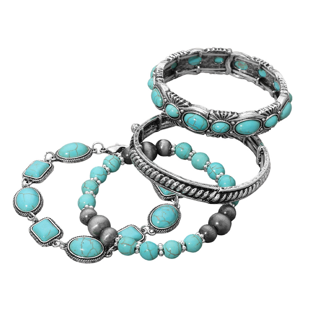 4PCS - Boho Oval Square Stone Embellished Stretch Multi Layered Bracelets