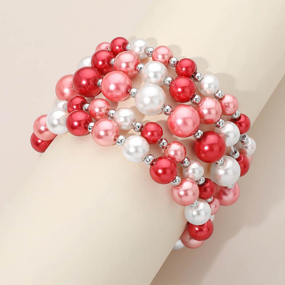 5PCS - Colorful Pearl Beaded Stretch Multi Layered Bracelets