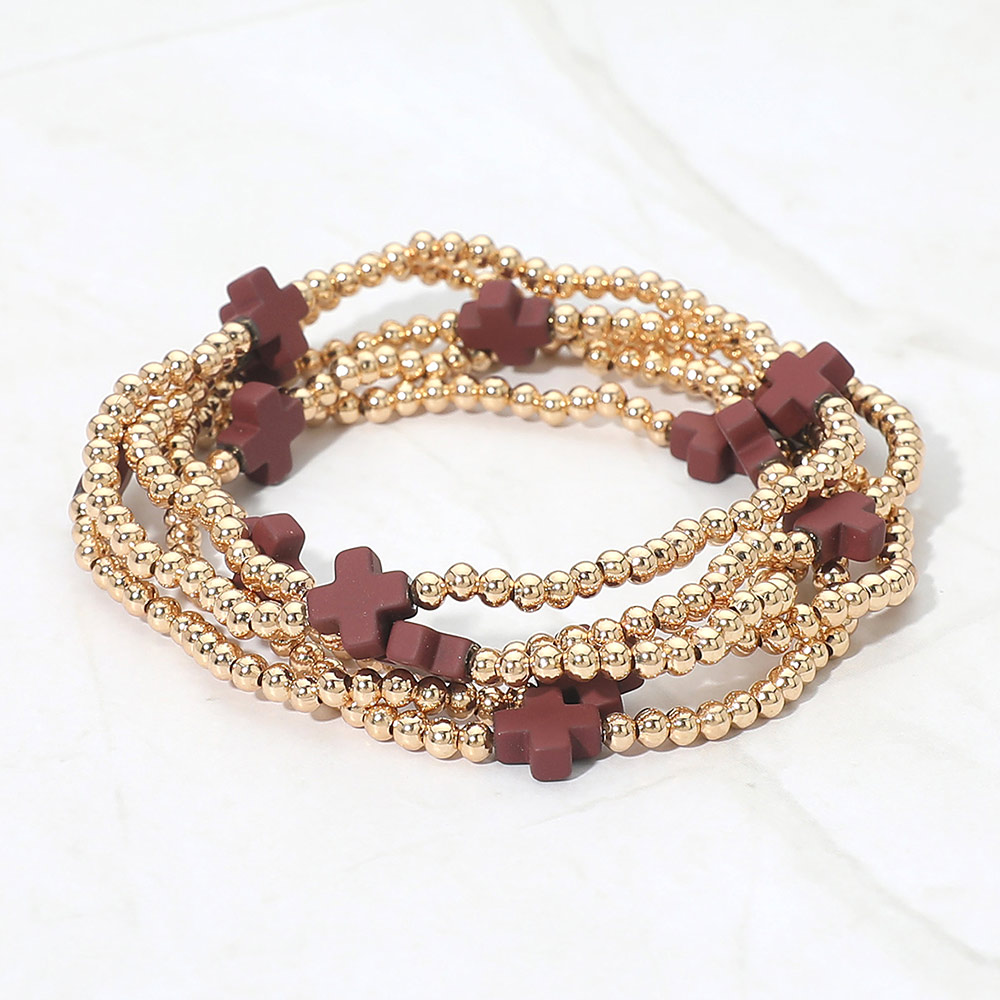• This layered stretch bracelet set features delicate beaded strands accented with cross-shaped charms for a meaningful yet trendy look. Designed for easy stacking, it offers a balanced mix of texture and detail that works for everyday wear, gifting, and faith-inspired or fashion-focused accessory collections.