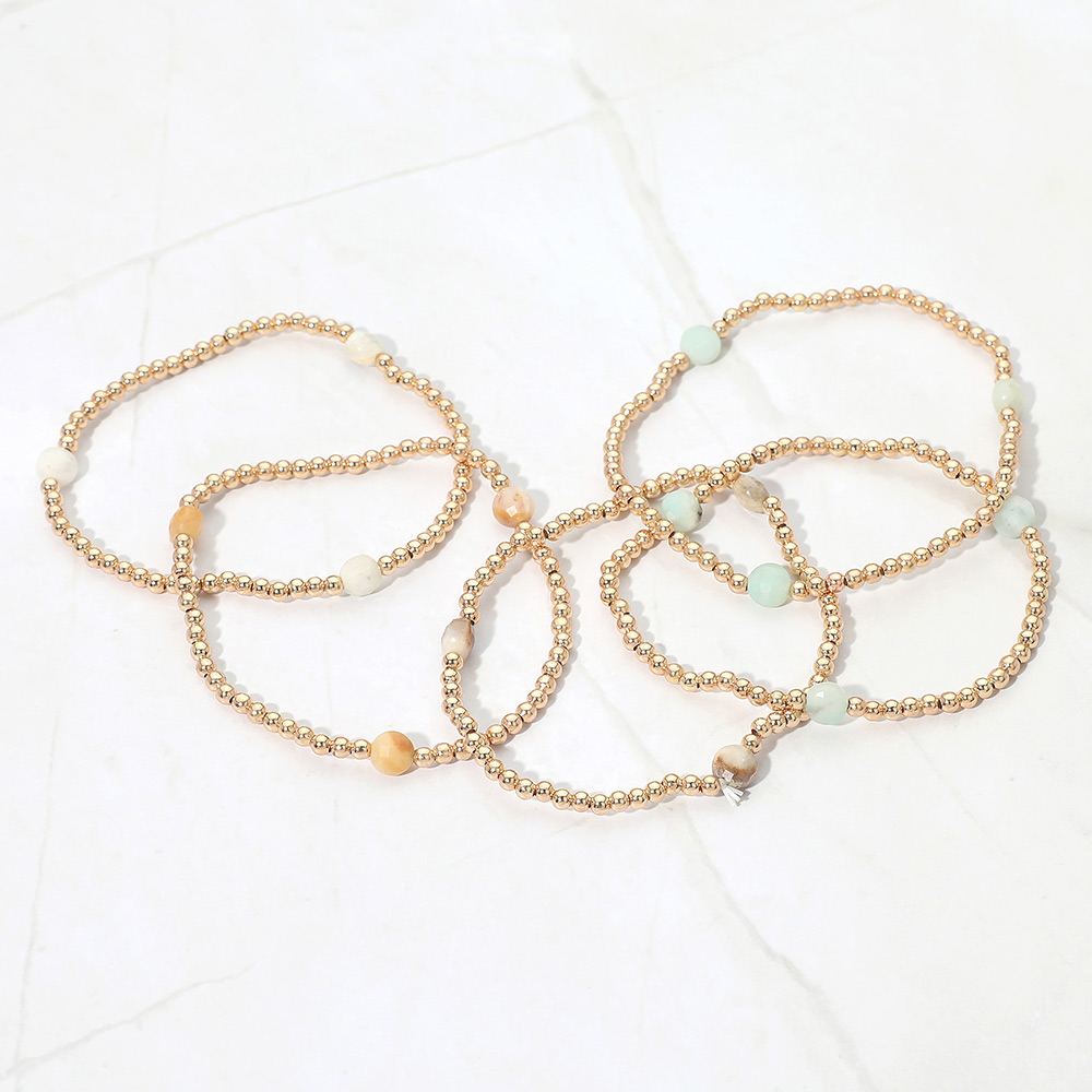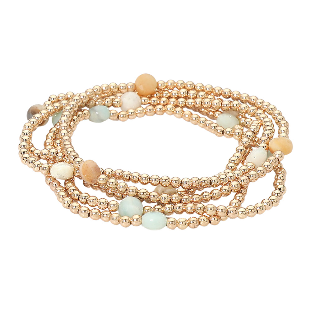 • This multi strand stretch bracelet set features layered beaded designs accented with smooth round details for a refined, everyday look. Easy to wear and stack, it offers a balanced blend of texture and simplicity, making it ideal for daily styling, gifting, or boutique accessory collections.