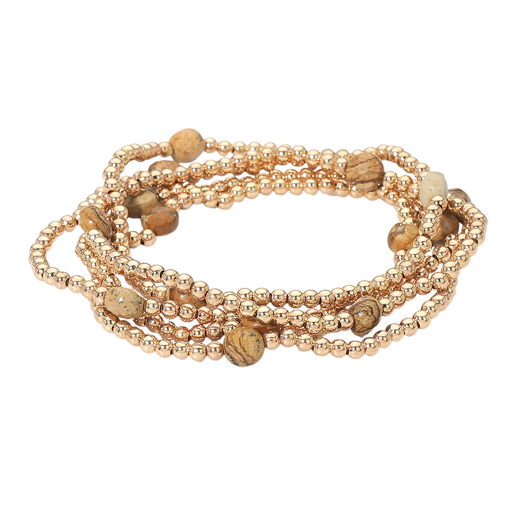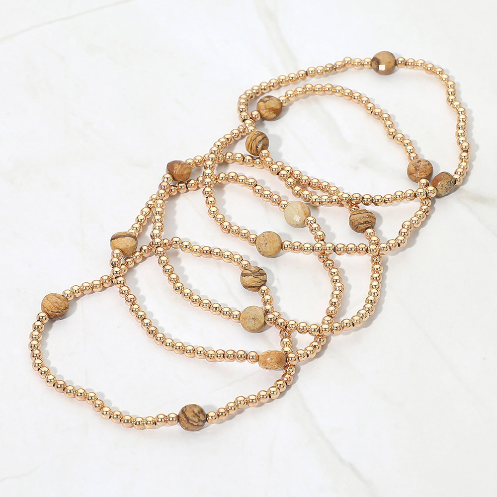 • This multi strand stretch bracelet set features layered beaded designs accented with smooth round details for a refined, everyday look. Easy to wear and stack, it offers a balanced blend of texture and simplicity, making it ideal for daily styling, gifting, or boutique accessory collections.