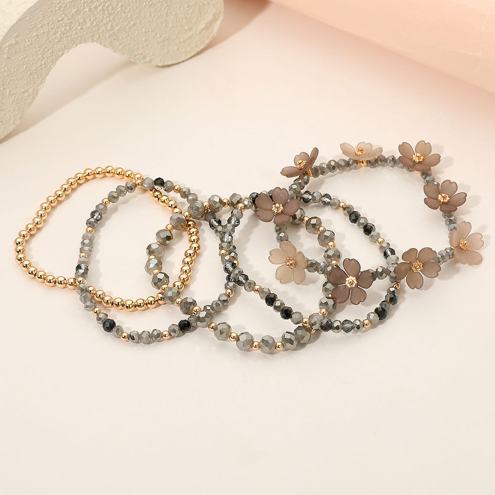 5PCS - Floral Faceted Beaded Stretch Multi Layered Bracelets