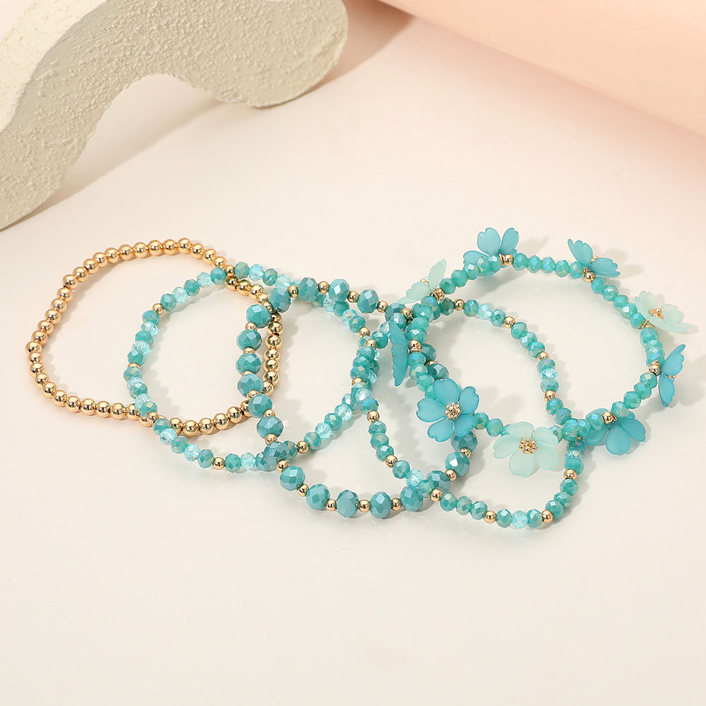 5PCS - Floral Faceted Beaded Stretch Multi Layered Bracelets