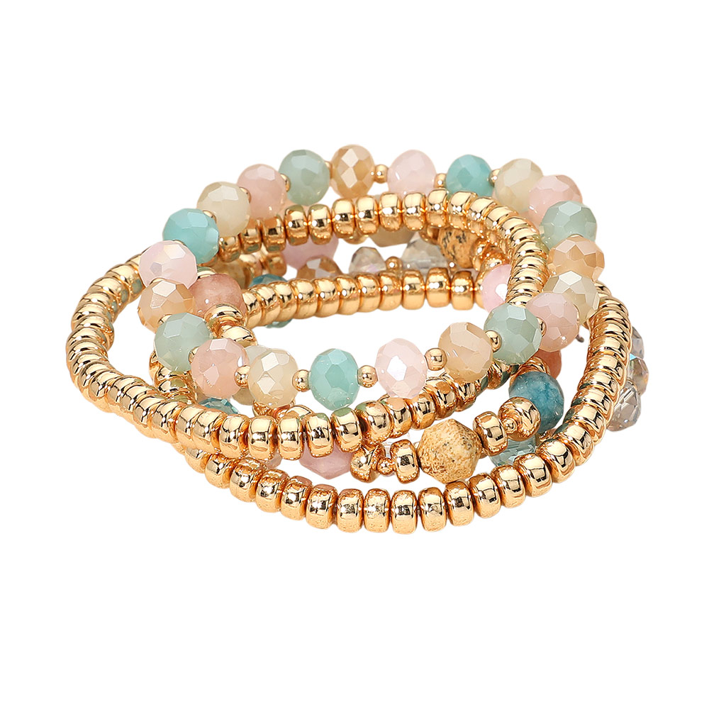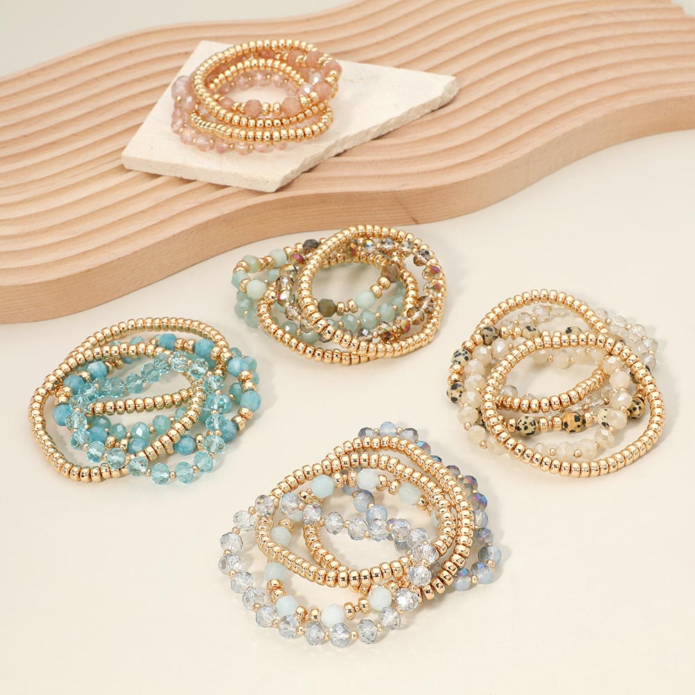 Details • Size : 1.25" H • Stretchable • Elevate your look with this faceted bead stretch bracelet set featuring a stylish layered design. Its blend of smooth and textured beads adds a touch of sophistication, making it perfect for daily wear or as a statement piece for special occasions. • Lead and Nickel Compliant