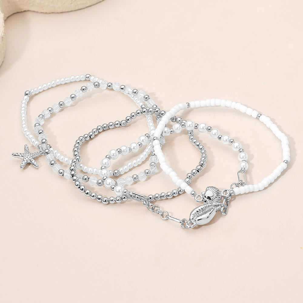 5PCS - Ocean Charm Beaded Stretch Multi Layered Bracelets