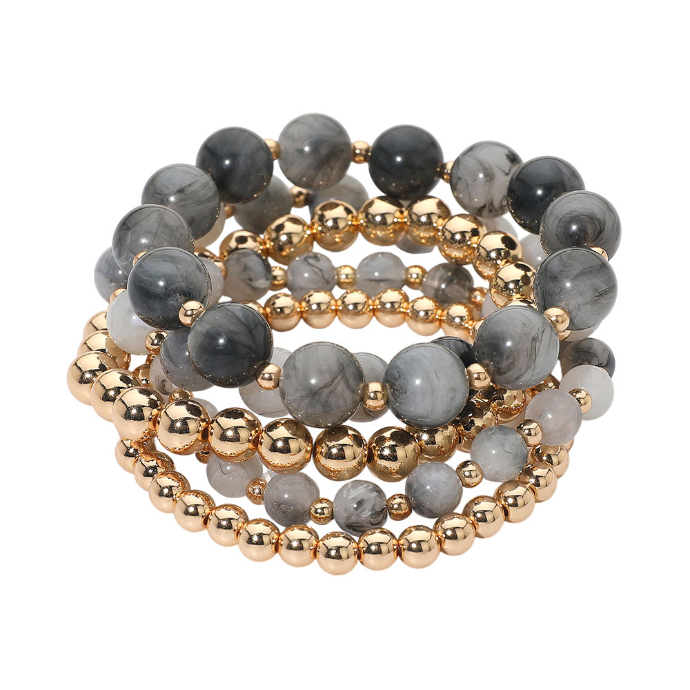 5PCS - Resin Metal Ball Beaded Stretch Multi Layered Bracelets