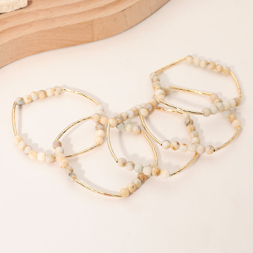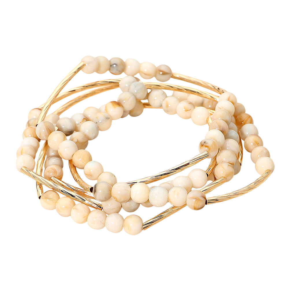 5PCS -Round Ball Curved Textured Bar Beaded Stretch Multi Layered Bracelets