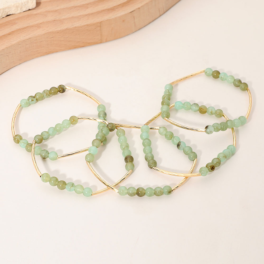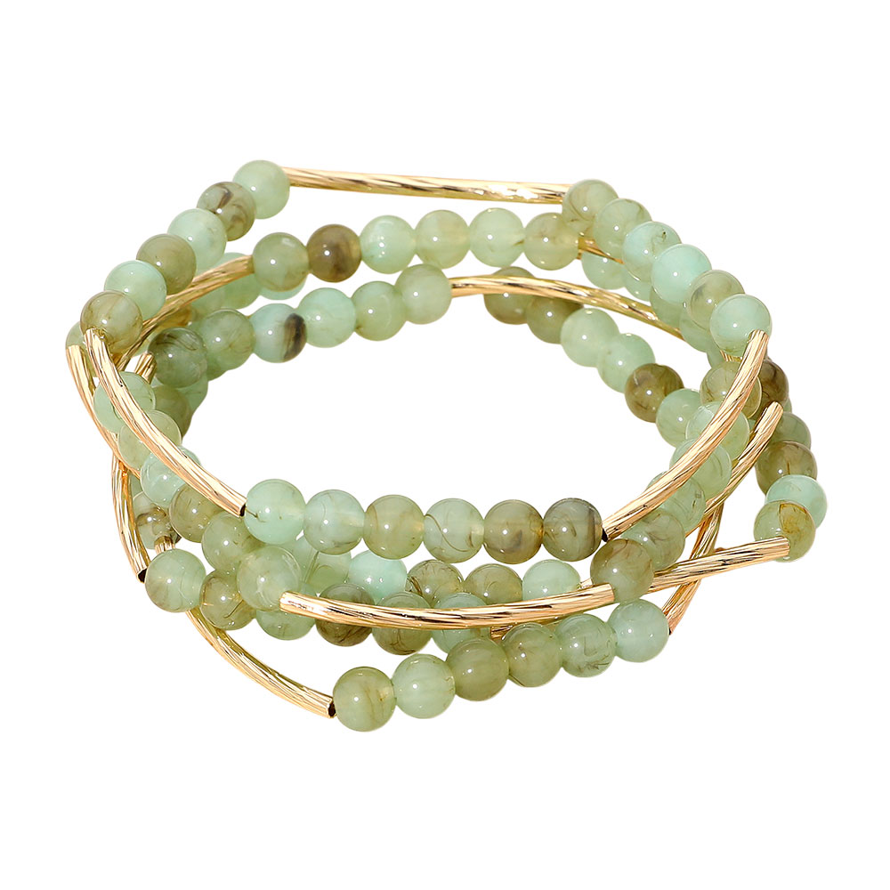5PCS -Round Ball Curved Textured Bar Beaded Stretch Multi Layered Bracelets