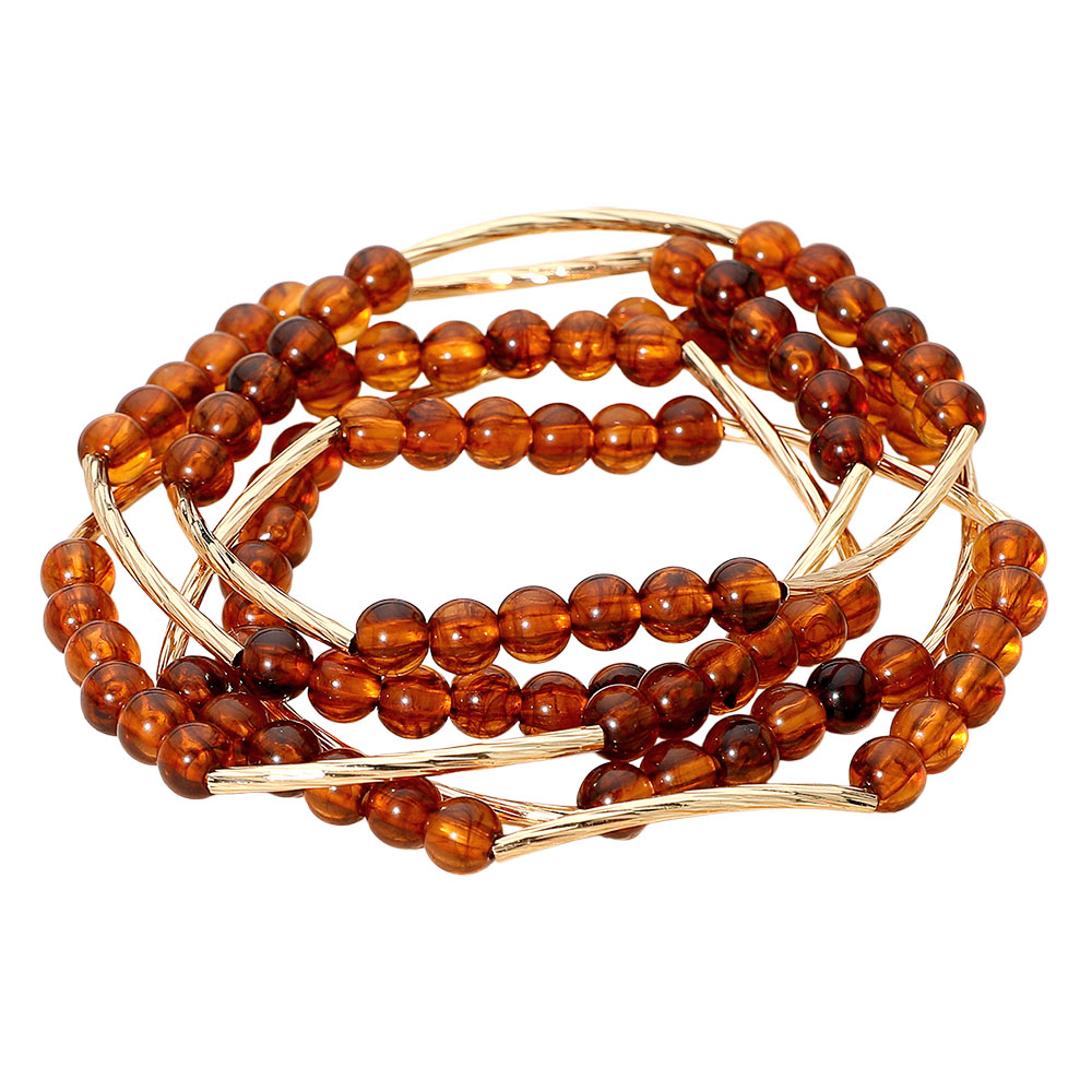 5PCS -Round Ball Curved Textured Bar Beaded Stretch Multi Layered Bracelets