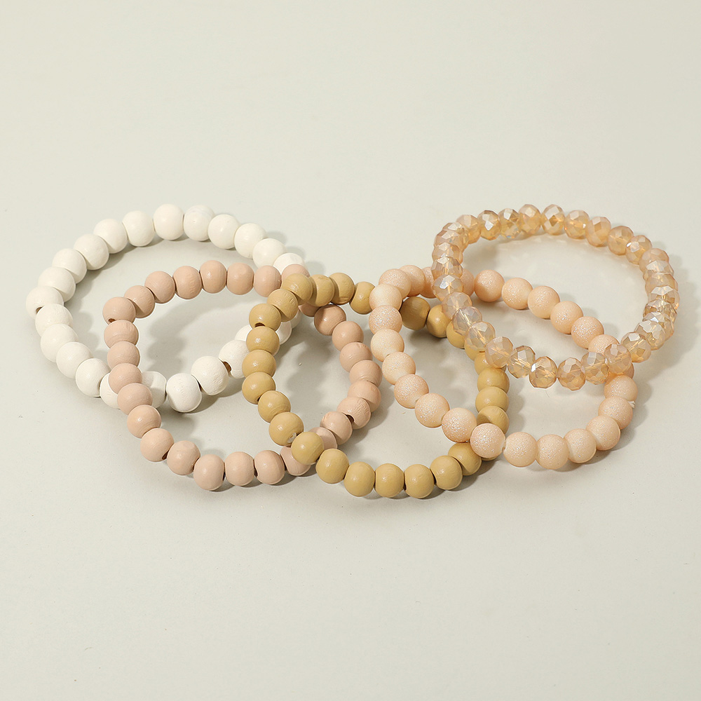 5PCS - Wood Faceted Beaded Stretch Bracelets