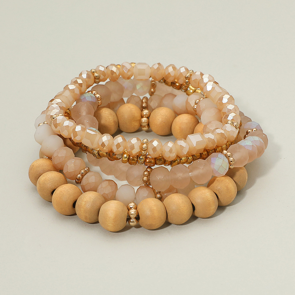 Details • Size : 1.5" H • Stretchable • This stretch bracelet set features a mix of smooth wooden beads and faceted glass accents, designed for versatile everyday wear. With multiple strands to stack together or wear separately, this set offers a chic and lightweight accessory to elevate any outfit. • Lead and Nickel Compliant