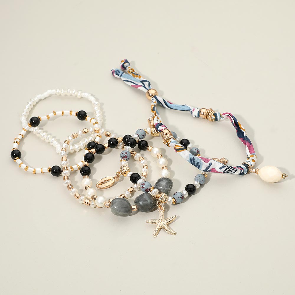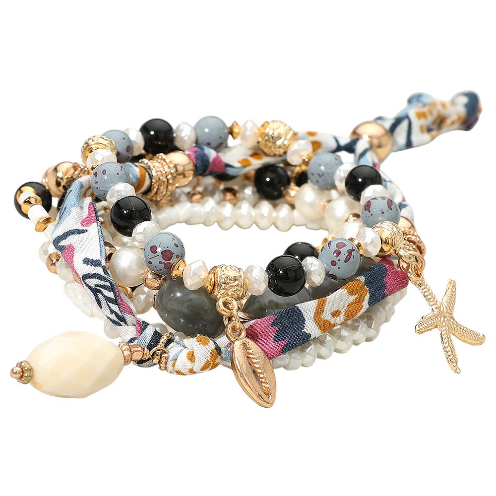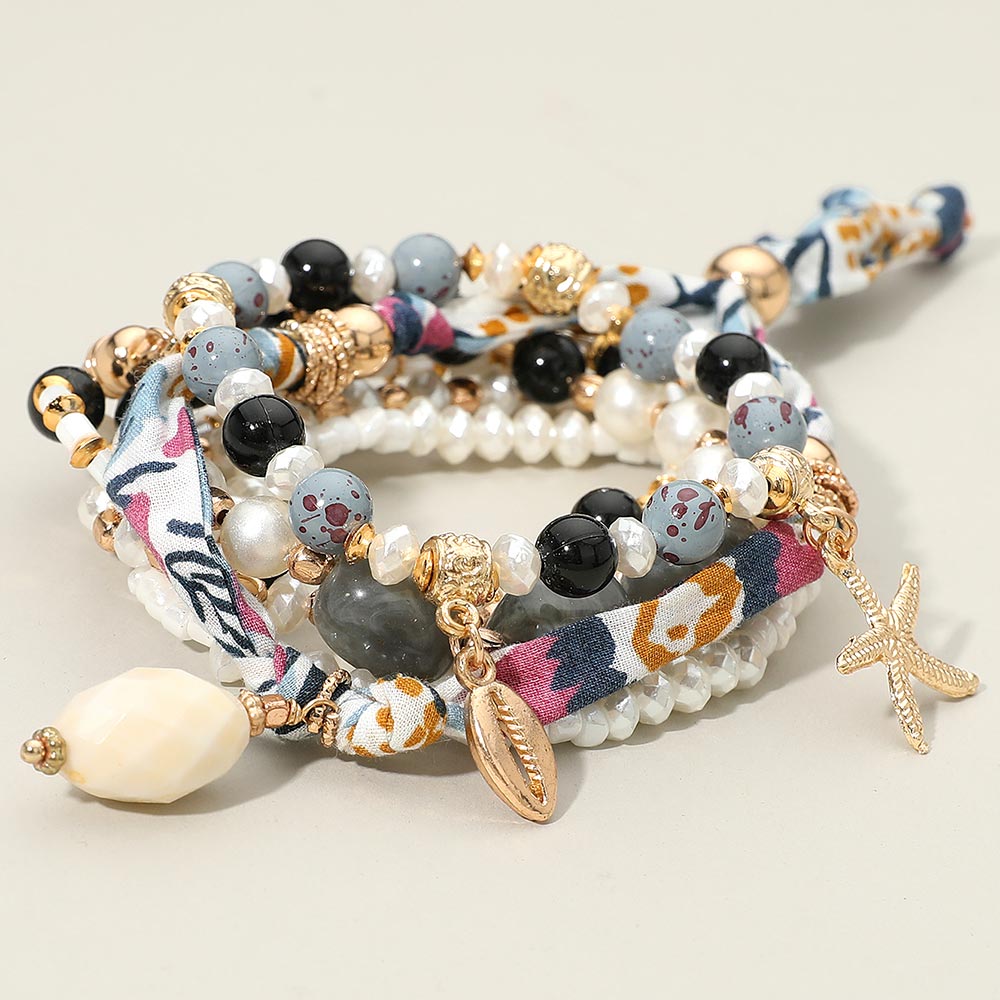 Details • Size 1 : 1.25" H / Stretchable • Size 2 : 0.4" H / Adjustable • A vibrant boho bracelet set featuring layered beads, playful patterns, and coastal-inspired charms that add uplifting movement and style. Designed for effortless stacking, it brings a lively, expressive touch to everyday looks while offering versatile combinations for any mood or occasion. • Lead and Nickel Compliant • Made In India