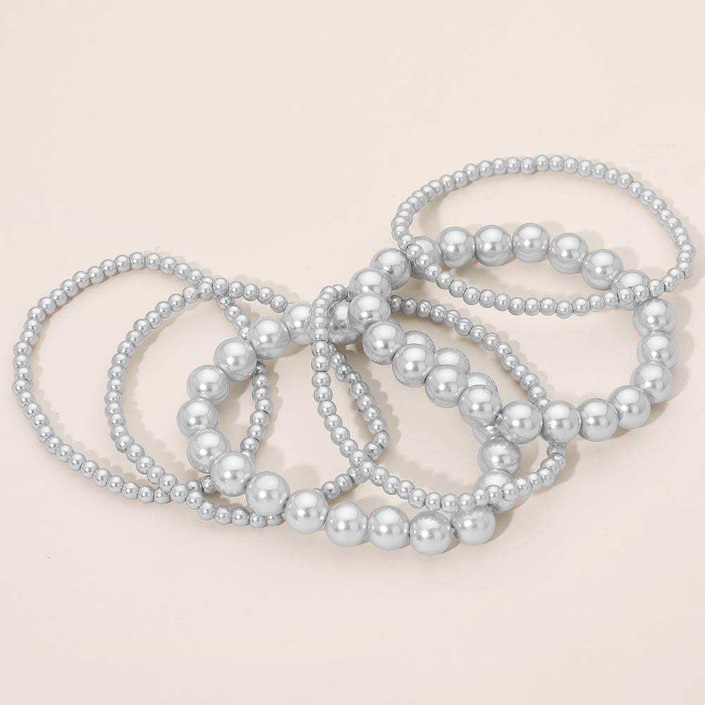 6PCS - Pearl Beaded Stretch Multi Layered Bracelets