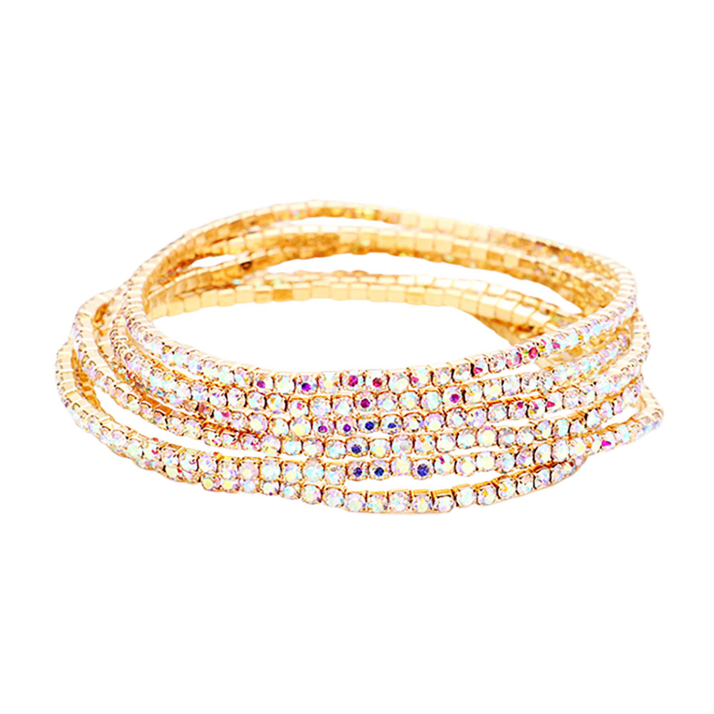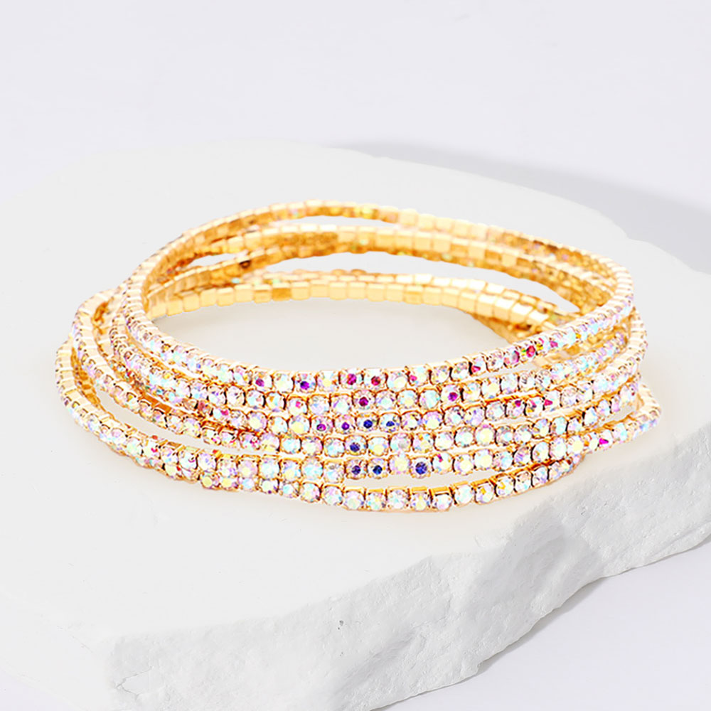 6PCS - Rhinestone Multi Layered Stretch Evening Bracelets