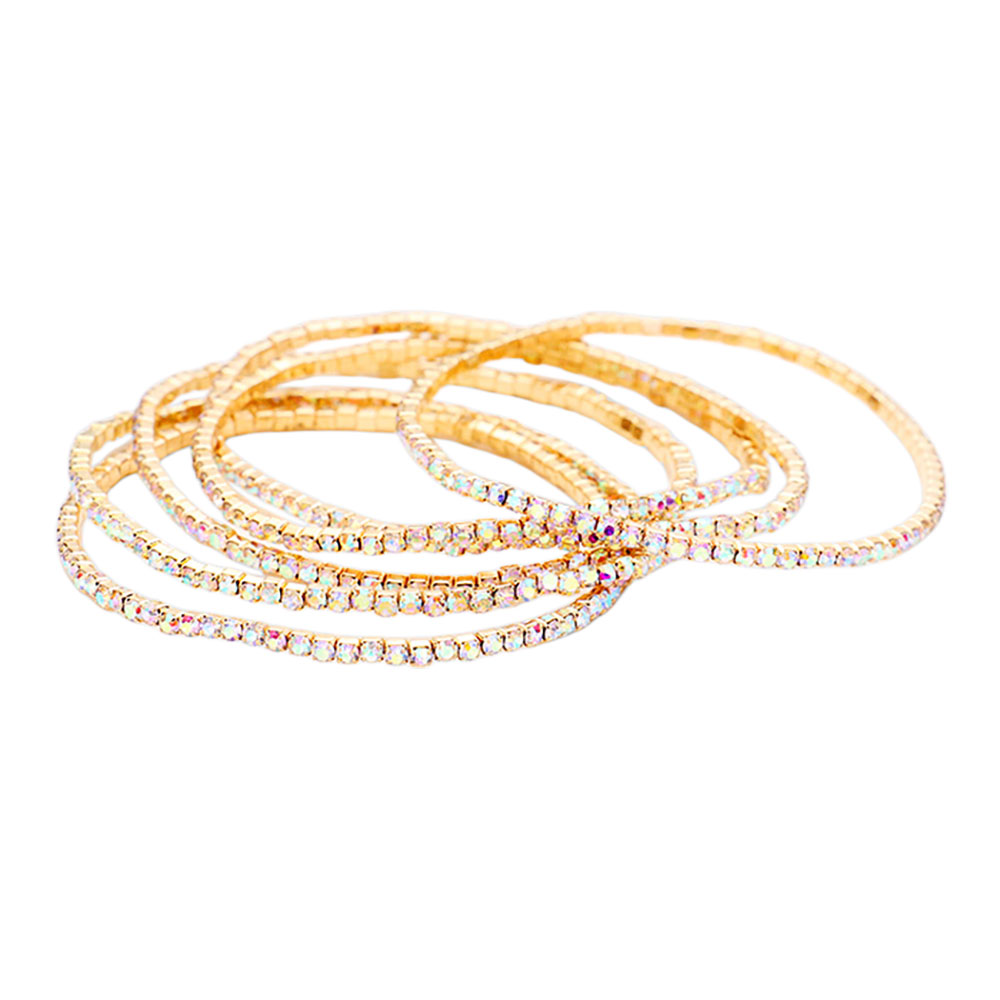 Details • Size : 0.5" H, 2" D • Stretchable • Add effortless sparkle to your look with this set of 6 stretch bracelets. Designed for comfort and versatility, these stackable pieces bring refined charm to casual or dressy outfits, making them the perfect accessory for layering with timeless appeal. • Lead and Nickel Compliant