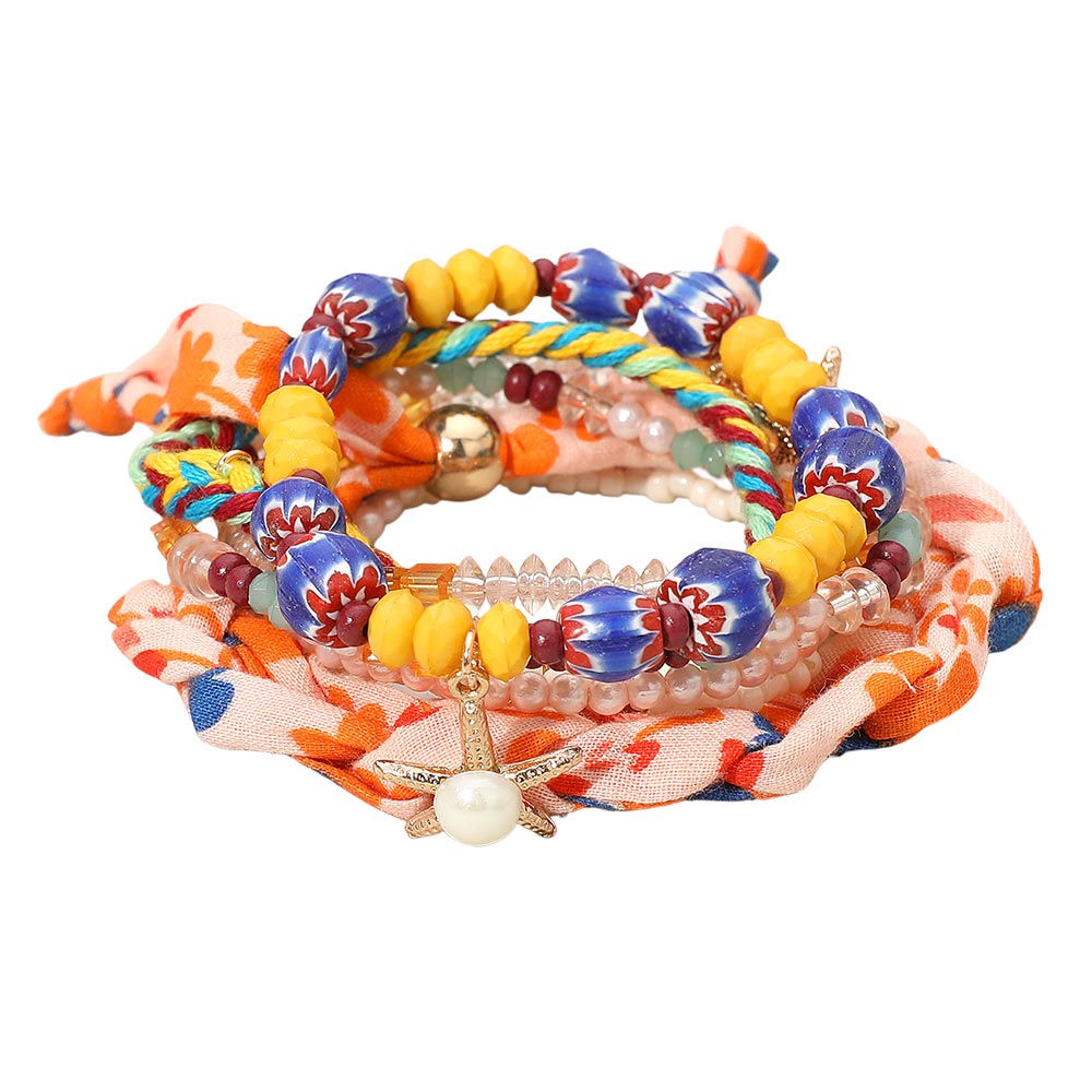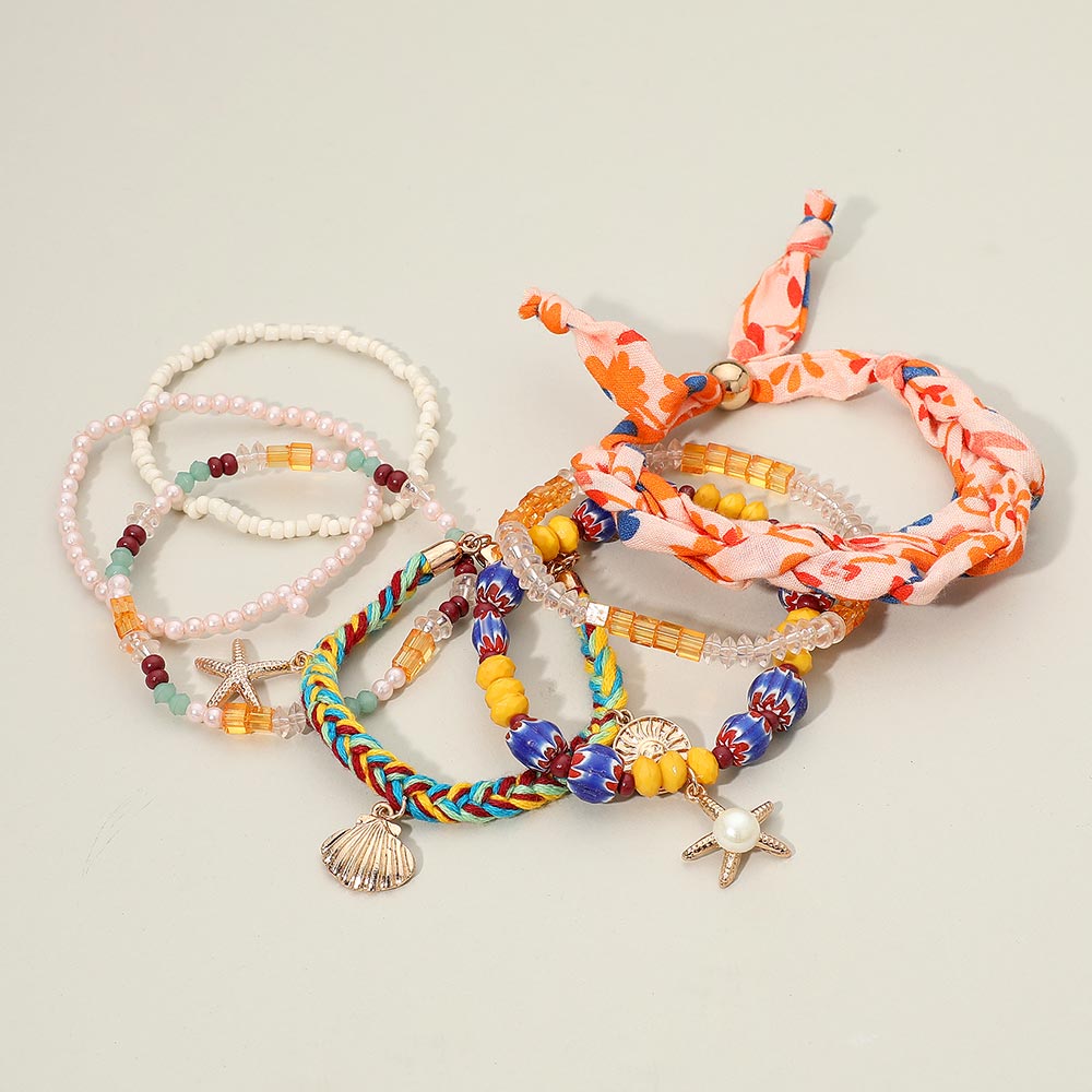 Details • Size 1 : 1" H / Stretchable • Size 2 : 0.6" H / Adjustable • Size 3 : 0.25" H, 7" + 2" L / Lobster Clasp Closure • Boho bracelet set designed for stylish stacking with multiple beaded strands, chic starfish and shell charms, and a braided fabric accent for a playful layered look. Stretch fit makes it easy to mix and match with casual or beach outfits. Perfect for summer vacations, festivals, and daily style. Adds a fun coastal vibe and a touch of charm to any jewelry collection or gift idea. • Lead and Nickel Compliant • Made In India
