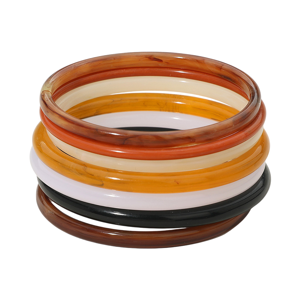 Details • Size : 1.6" H, 2.5" D • Brighten up your look with this multi-tone layered bangle set featuring a mix of warm and neutral hues. Designed for effortless stacking, these glossy bangles add a chic and playful touch to any outfit, making them a versatile choice for both casual and elegant styles.