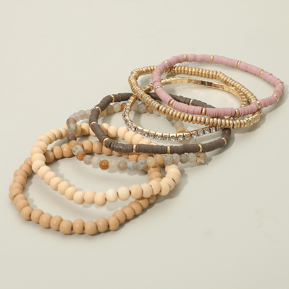 Details • Size : 1.3" H • Stretchable • This multi-strand stretch bracelet set combines a mix of smooth beads, metallic accents, and shimmering details for a stylish layered look. Easy to slip on, it offers comfort and versatility, making it perfect for stacking or wearing alone as a bold statement accessory. • Lead and Nickel Compliant