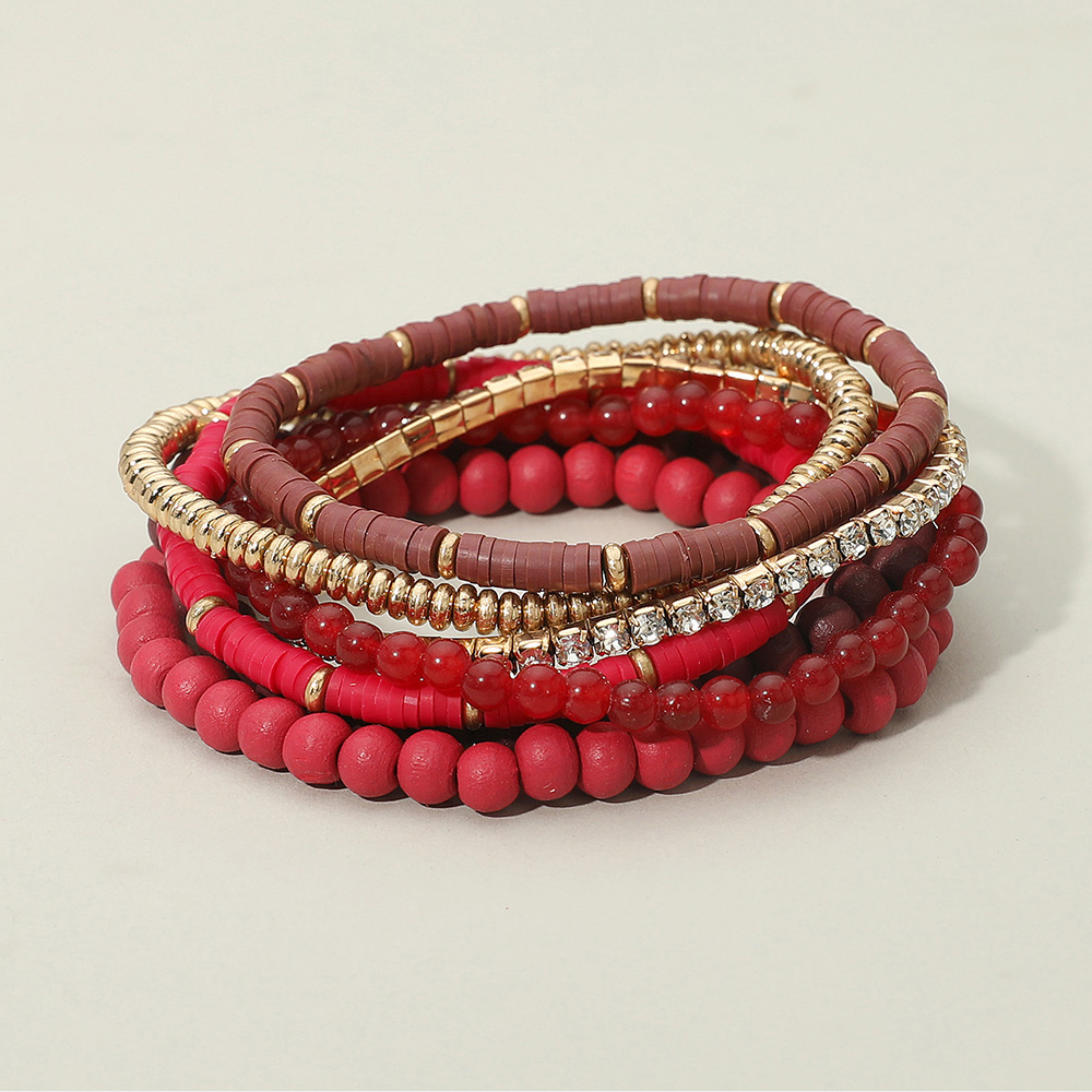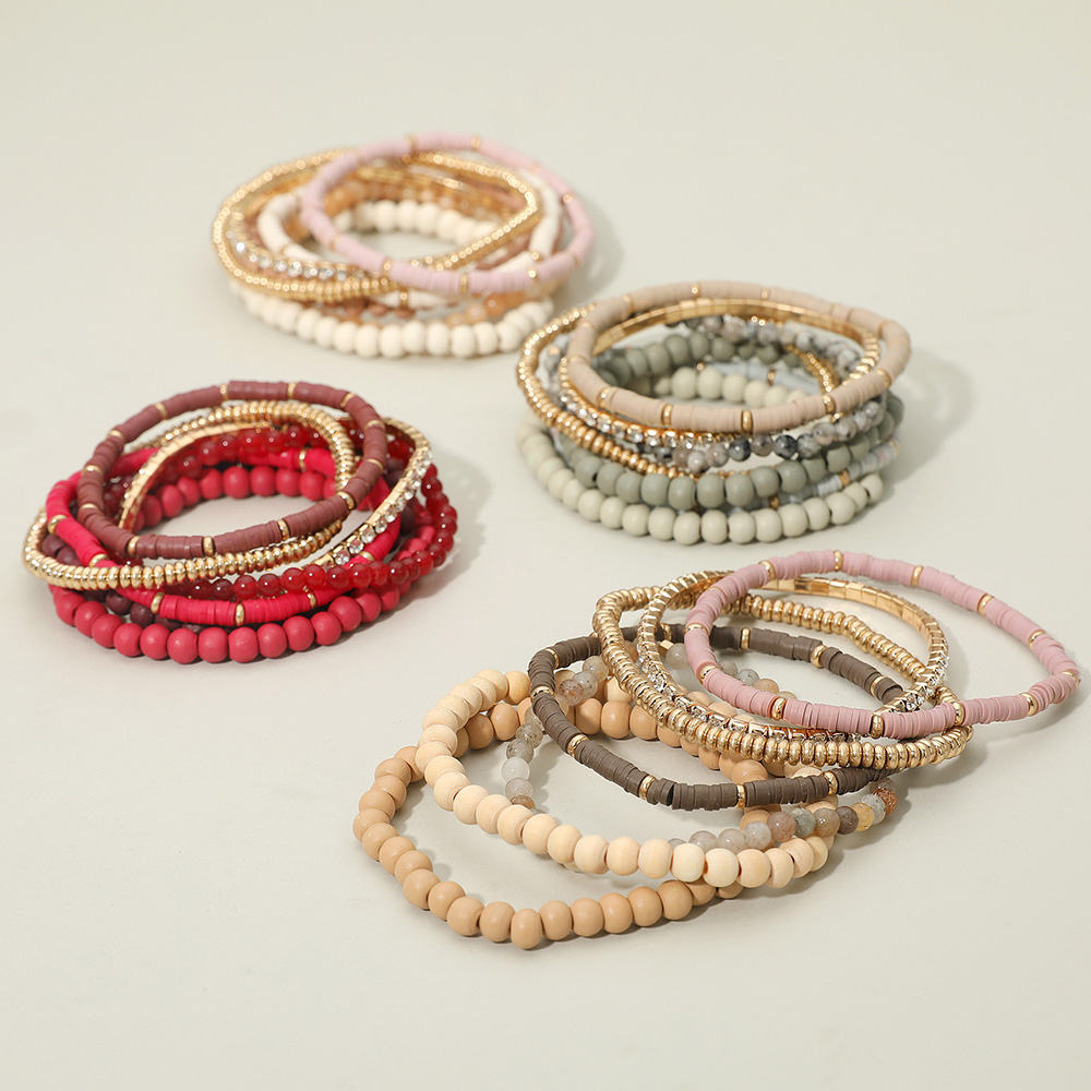 Details • Size : 1.3" H • Stretchable • This multi-strand stretch bracelet set combines a mix of smooth beads, metallic accents, and shimmering details for a stylish layered look. Easy to slip on, it offers comfort and versatility, making it perfect for stacking or wearing alone as a bold statement accessory. • Lead and Nickel Compliant