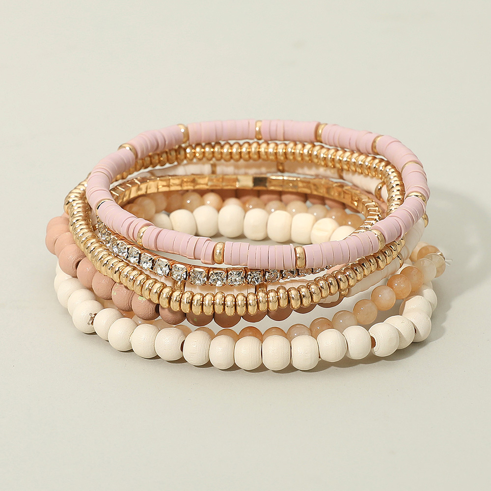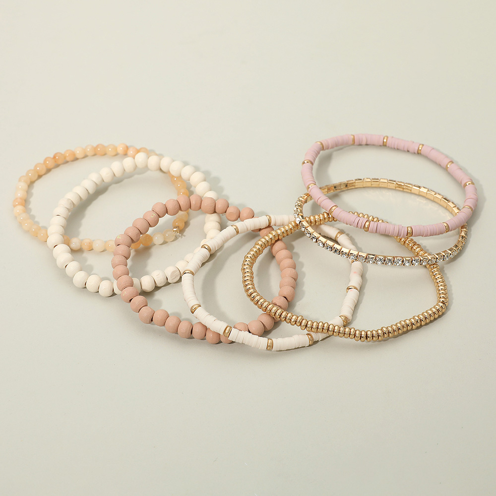 Details • Size : 1.3" H • Stretchable • This multi-strand stretch bracelet set combines a mix of smooth beads, metallic accents, and shimmering details for a stylish layered look. Easy to slip on, it offers comfort and versatility, making it perfect for stacking or wearing alone as a bold statement accessory. • Lead and Nickel Compliant