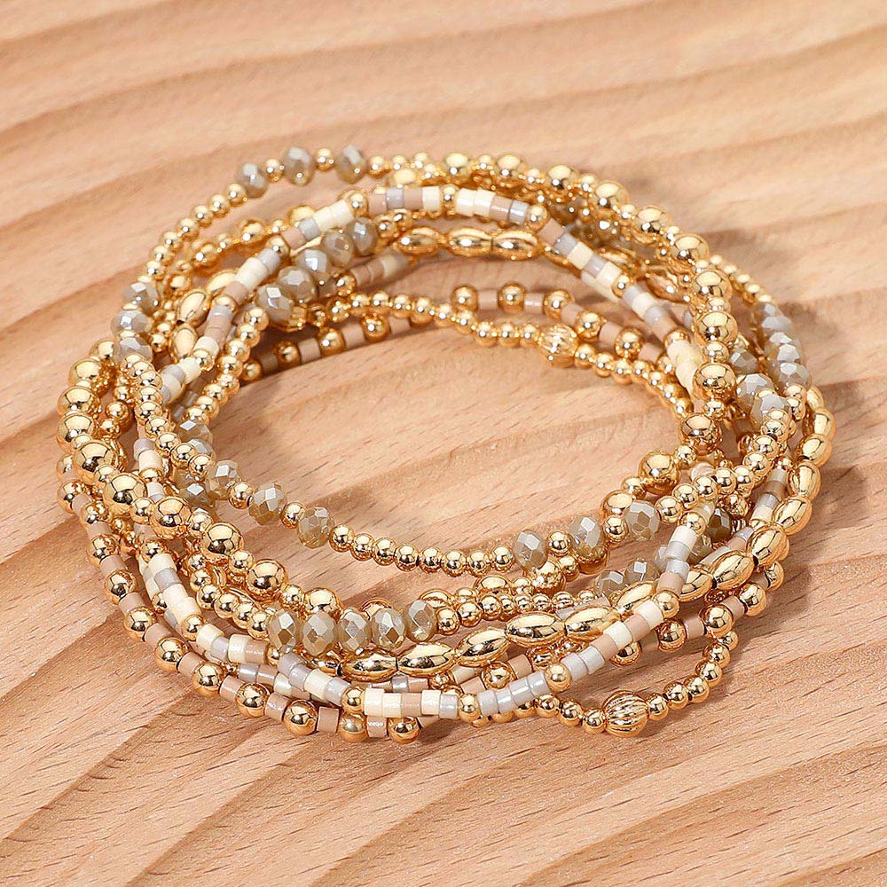 8PCS - Seed Beaded Stretch Multi Layered Bracelets