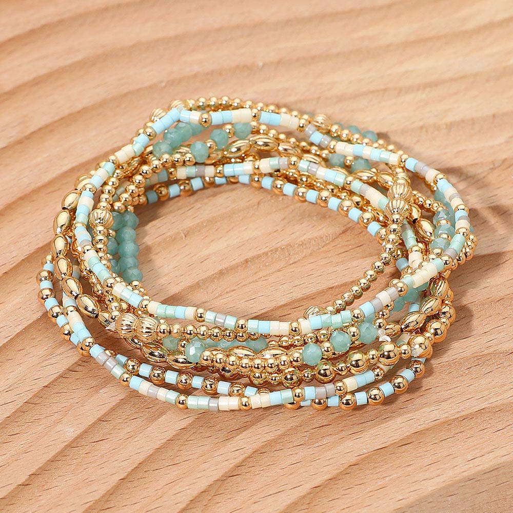8PCS - Seed Beaded Stretch Multi Layered Bracelets