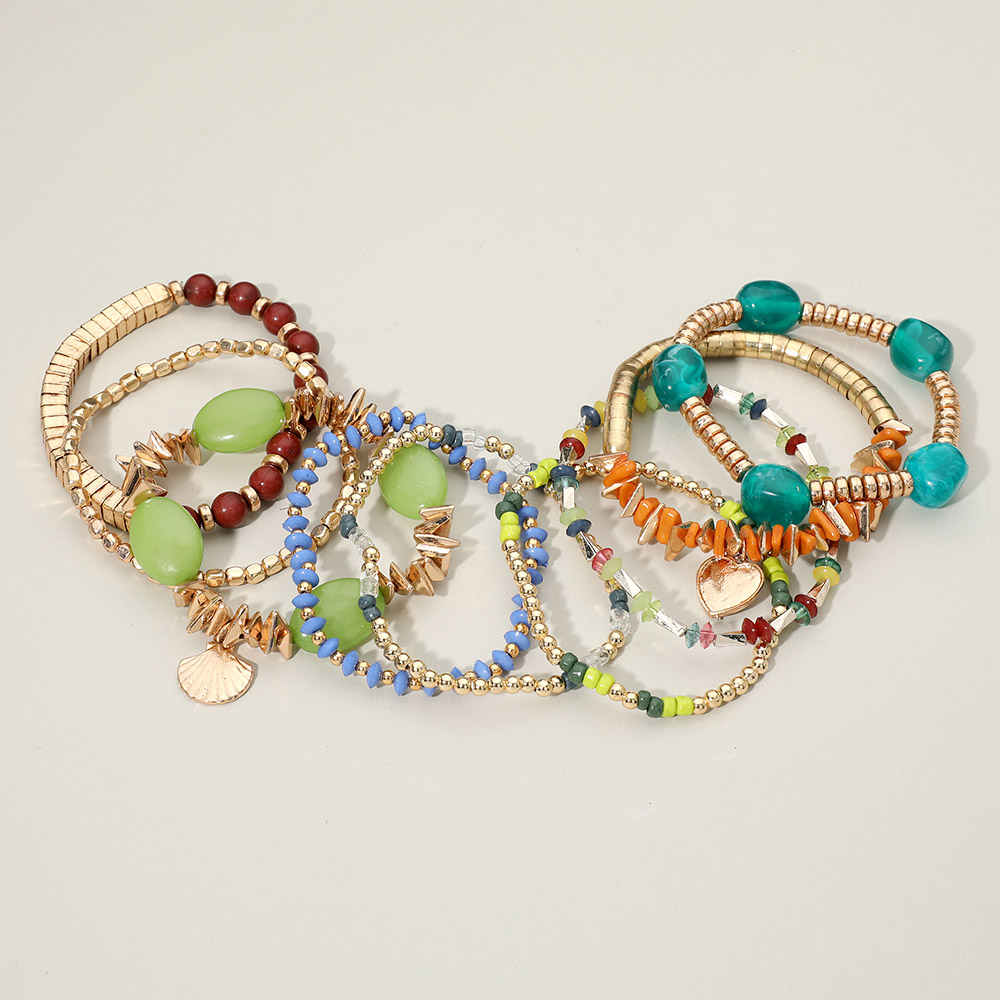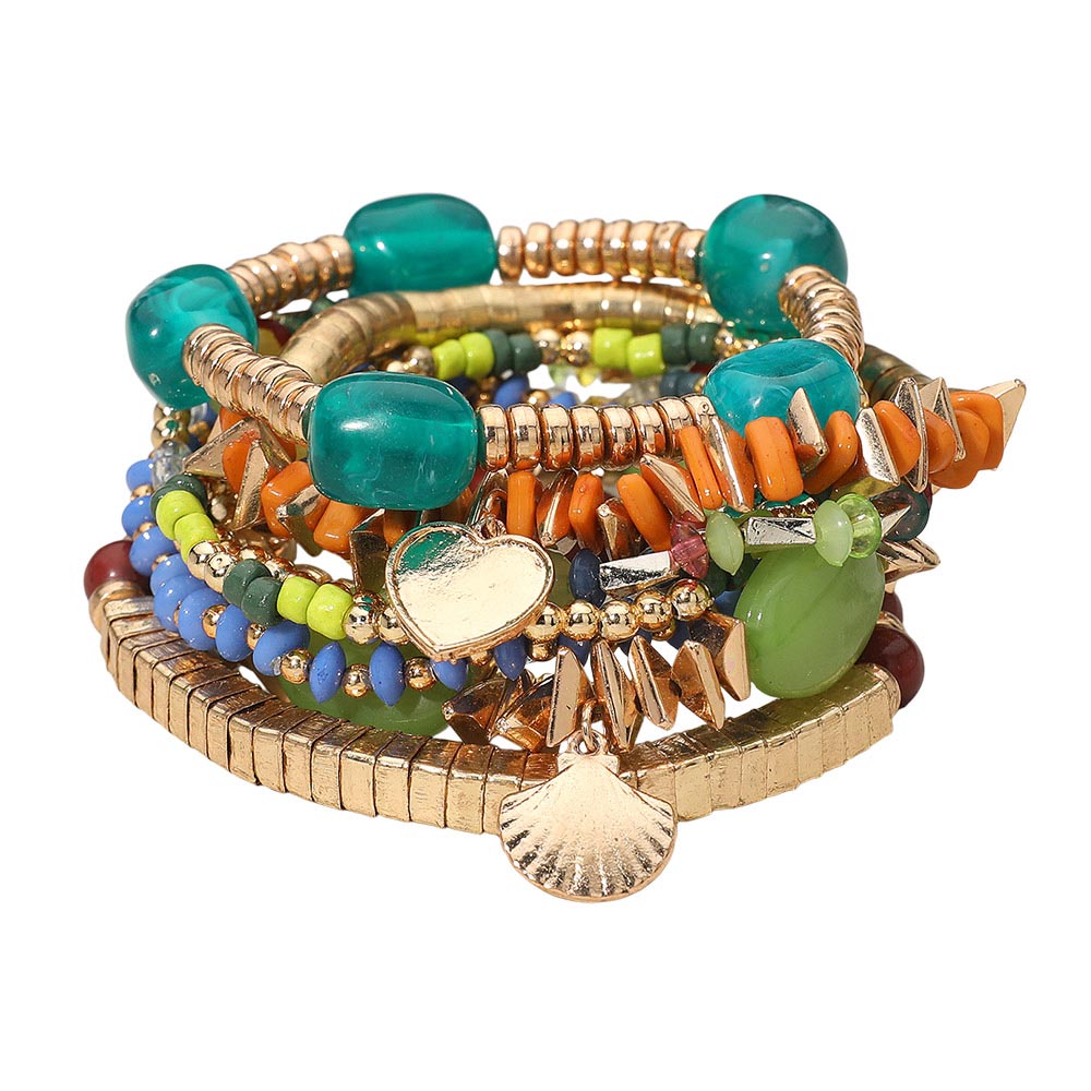 Details • Size : 2" H • Stretchable • Boho stacked beaded bracelet set featuring layered stretch styling with heart and shell charms, smooth and textured beads, and unique shapes for trendy everyday wear and gifting • Lead and Nickel Compliant • Made In India