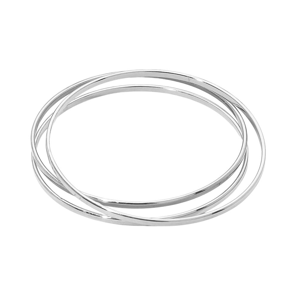 Details • Size : 0.3" H, 2.6" D • Water Resistant • Sleek layered bangle bracelet set featuring multiple slim bands for a clean, modern stacked look. Designed to add subtle shine and movement, this versatile set elevates everyday outfits or complements evening styles when worn together or mixed with other favorite bracelets. • Hypoallergenic • Stainless Steel