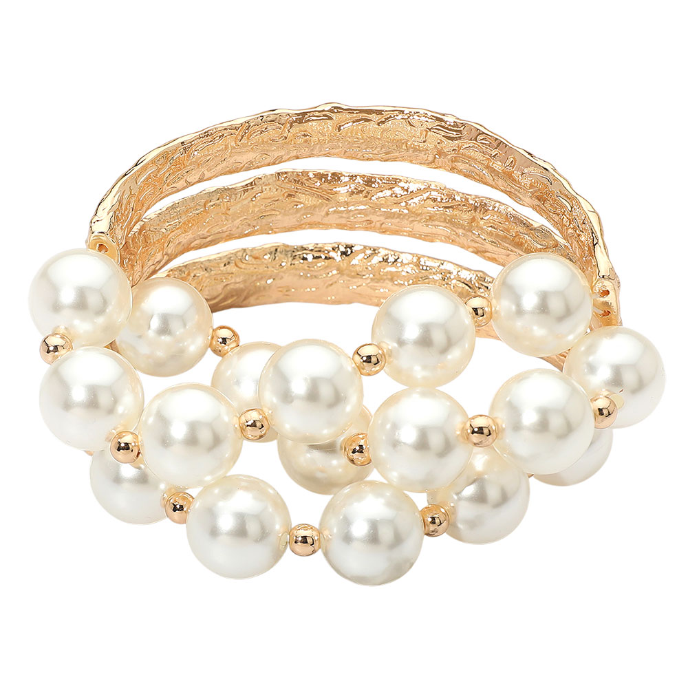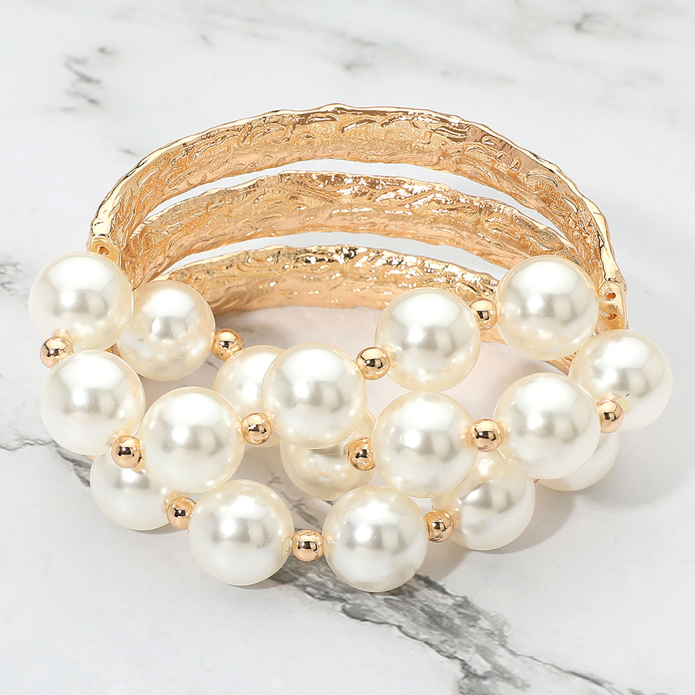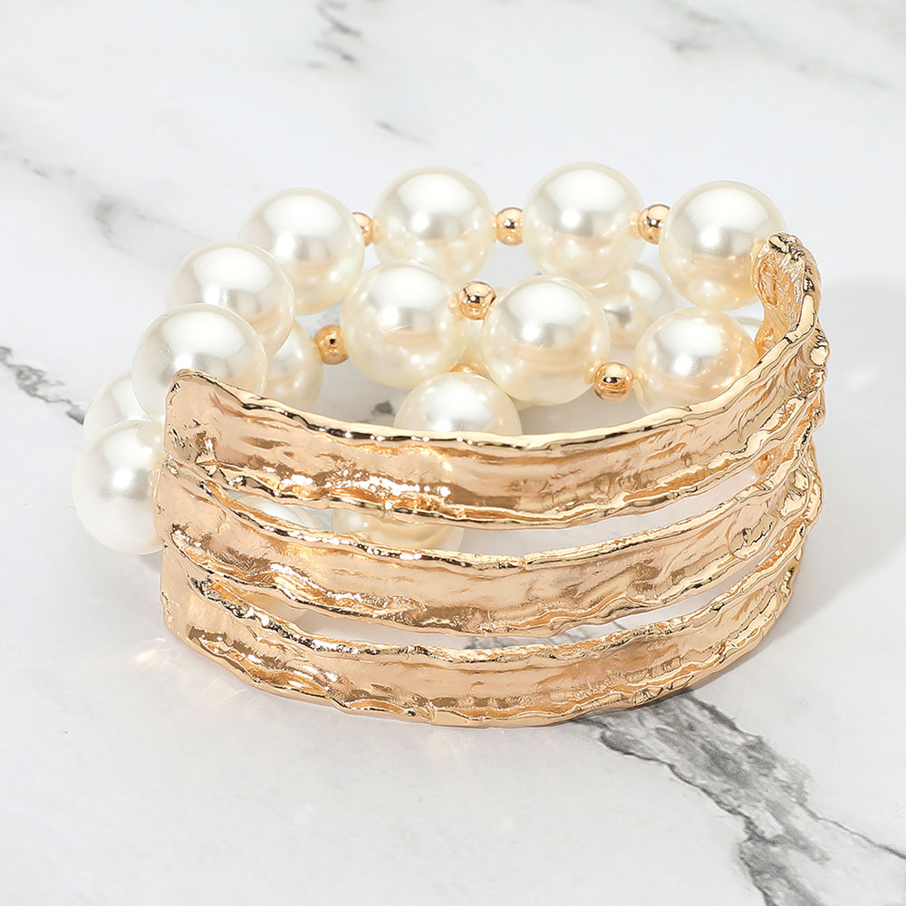 Multi Strand Pearl Bead Stretch Statement Bracelet