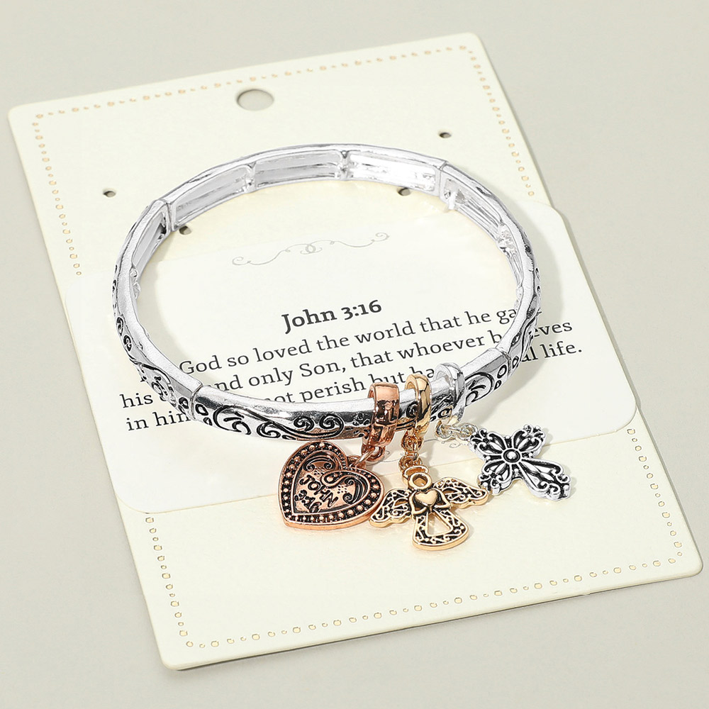 John 3:16 Message Angel Heart Cross Charm Stretch Bracelet