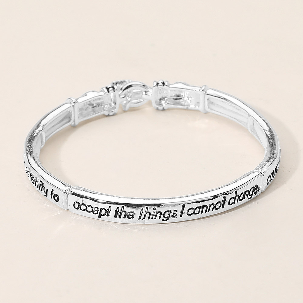 Details • Size : 0.25" H, 2.4" D • Charm Size : 0.6" L • Stretchable • Embrace peace and faith with this elegant bangle bracelet featuring the Serenity Prayer and a symbolic dove charm. Designed to inspire calm and courage, it serves as a daily reminder of wisdom and inner strength, making it a meaningful gift or personal keepsake for spiritual reflection. • Lead and Nickel Compliant