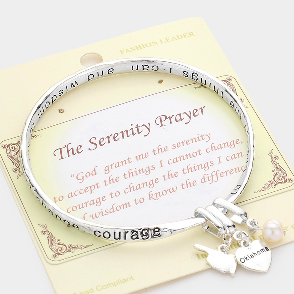 The Serenity Prayer Message Oklahoma Heart Pearl Bangle Braelet