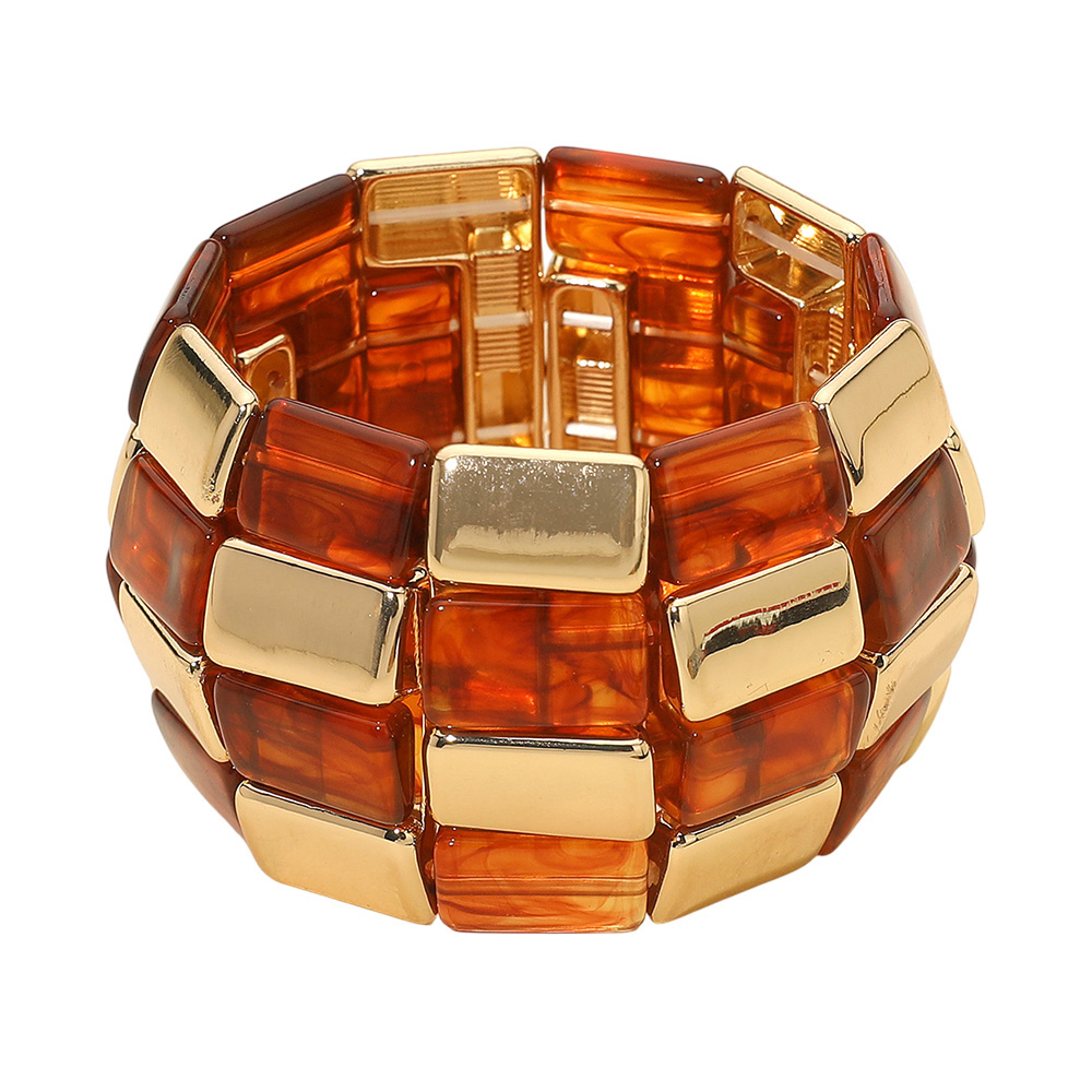 Bold Geometric Resin Metal Beaded Wide Stretch Bracelet