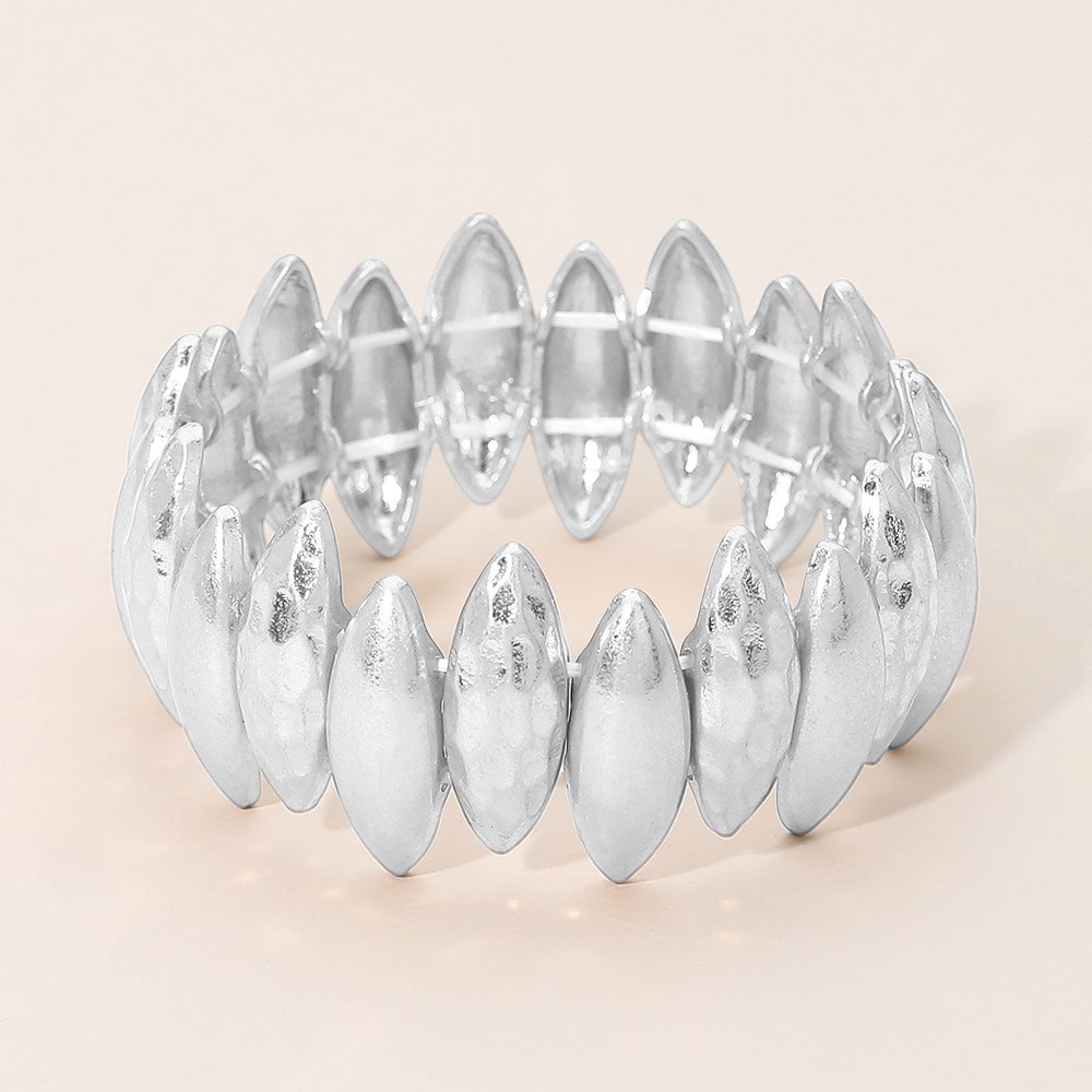 Bold Hammered Metal Marquise Beaded Stretch Bracelet