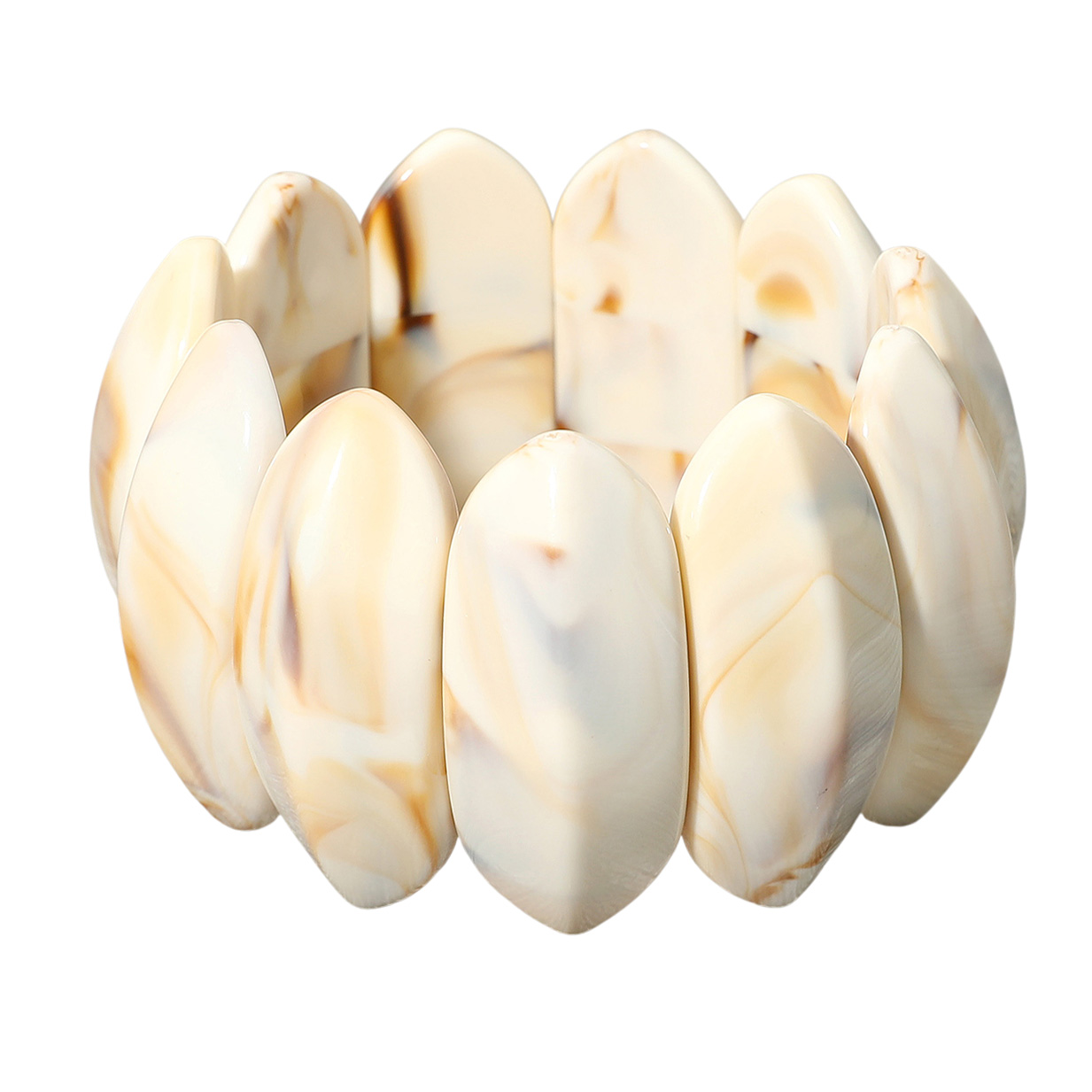 • Elevate your look with this marbled stretch bracelet featuring pointed oval panels for a chic and contemporary vibe. Its bold design and flexible fit make it perfect for stacking or wearing solo as a statement piece, adding versatile style to both casual and dressy outfits.