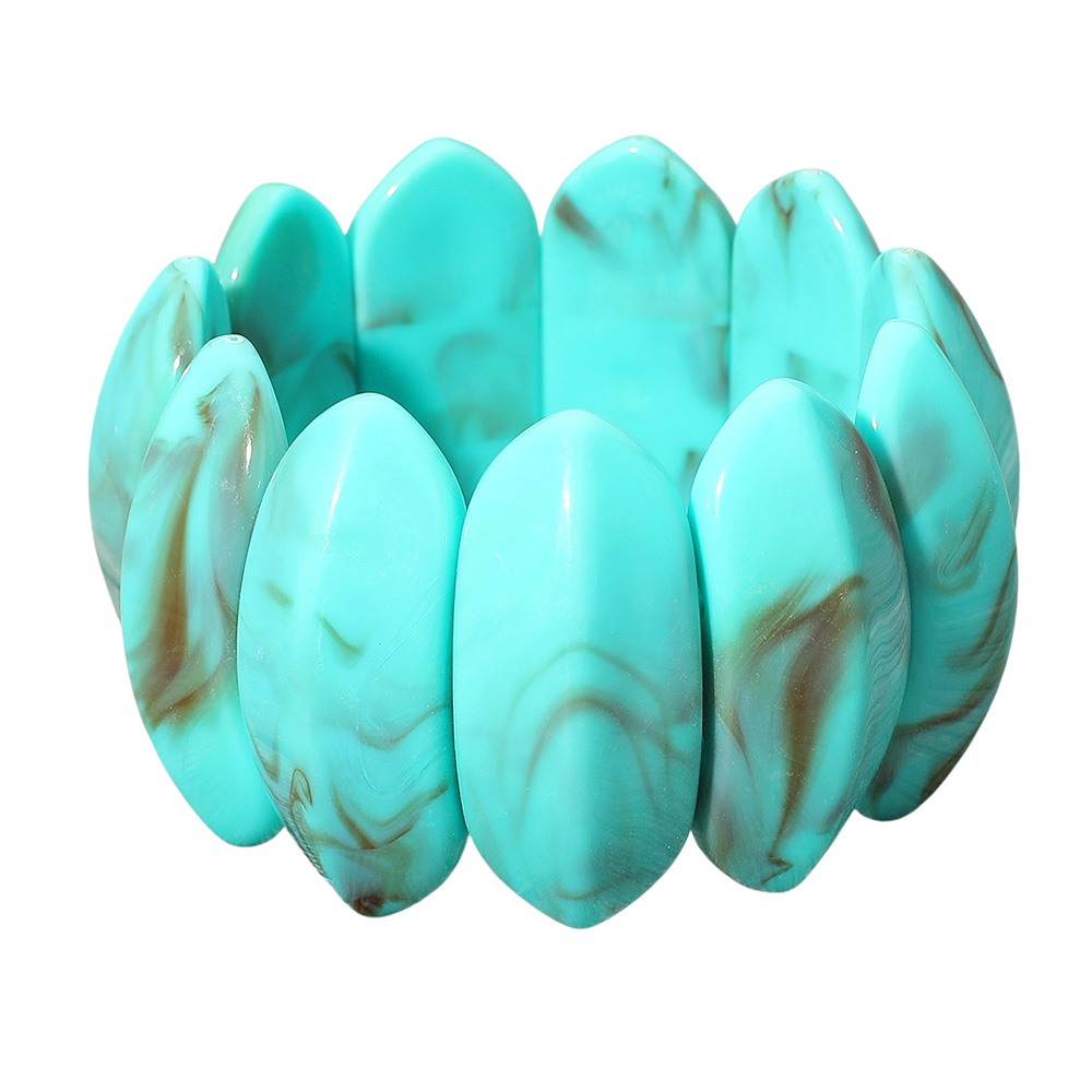 • Elevate your look with this marbled stretch bracelet featuring pointed oval panels for a chic and contemporary vibe. Its bold design and flexible fit make it perfect for stacking or wearing solo as a statement piece, adding versatile style to both casual and dressy outfits.