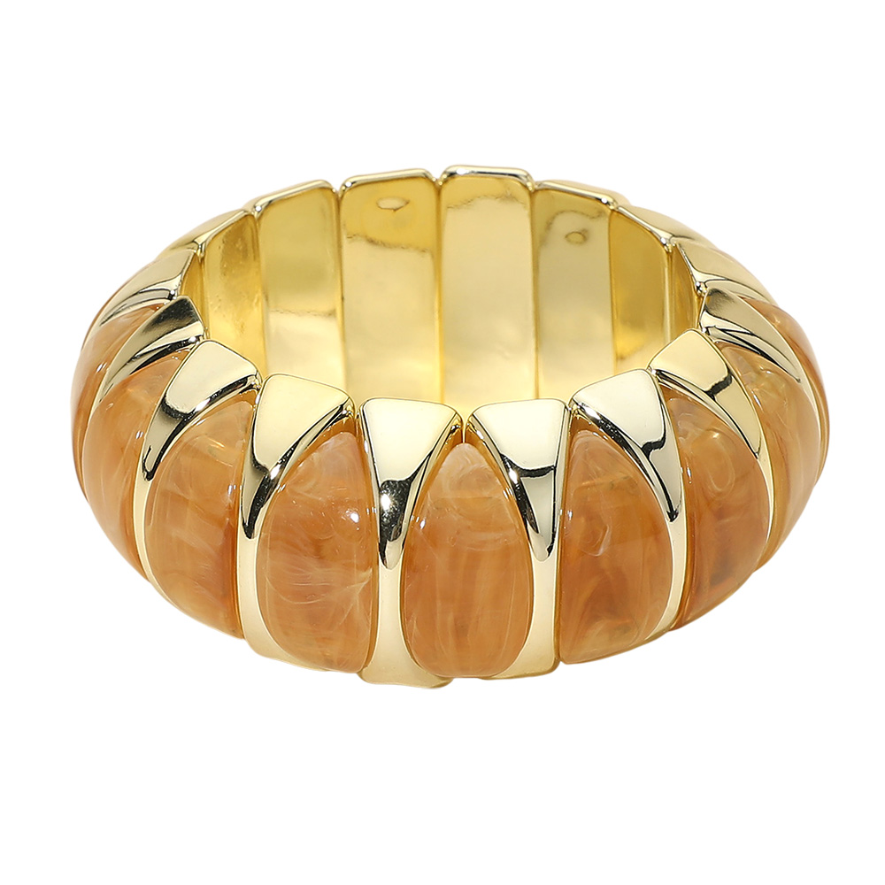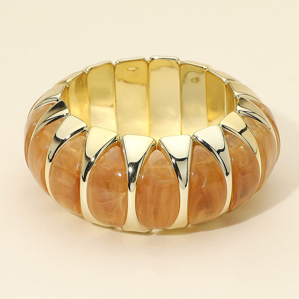Details • Size : 1.1" H • Stretchable • Eye-catching chunky stretch bracelet designed to elevate everyday and statement looks. Features a smooth, sculpted link design with a comfortable slip-on fit for easy wear. Perfect for layering or wearing solo, this bracelet adds modern flair to casual, work, or dressy outfits and is ideal for boutique accessory collections. • Lead and Nickel Compliant