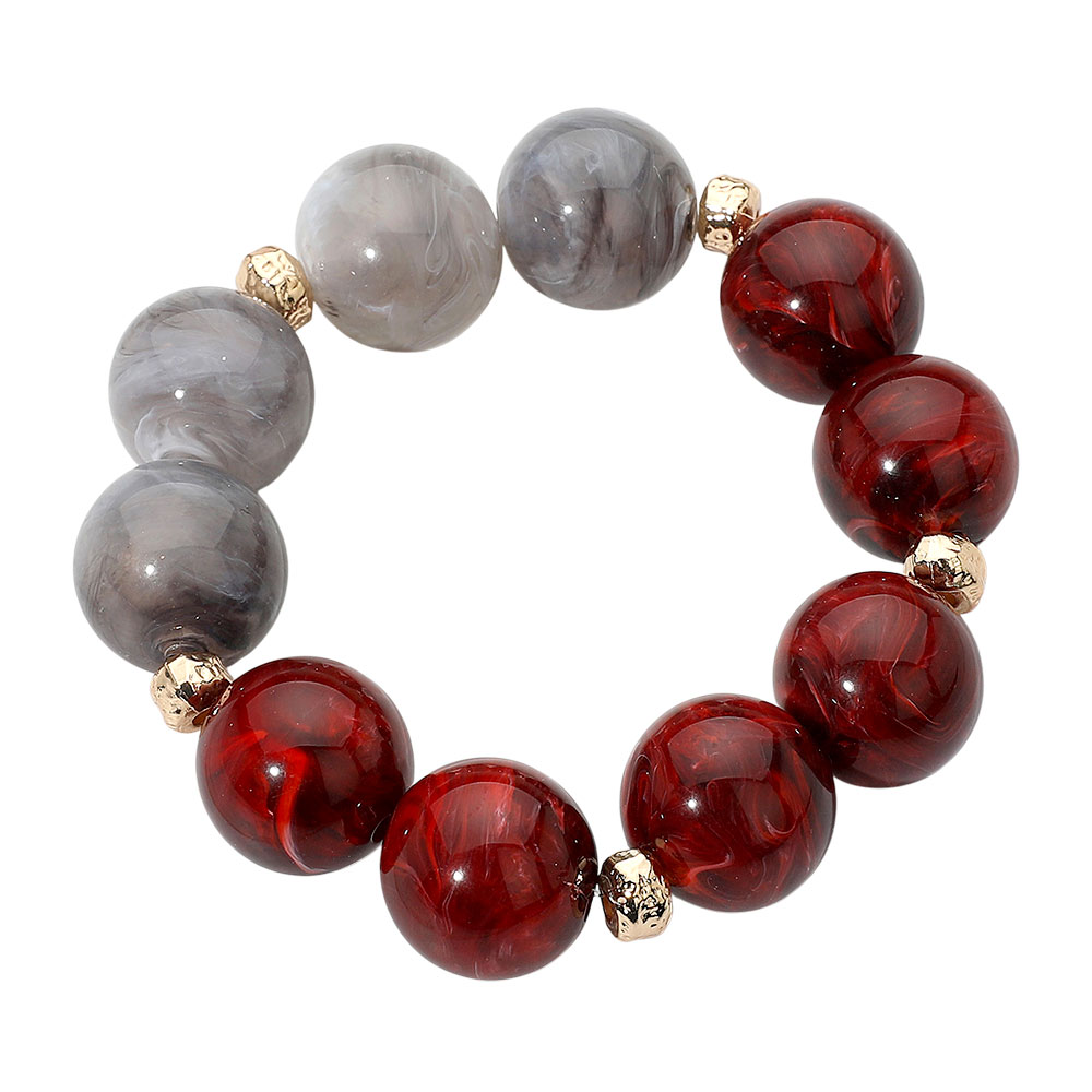 • This elegant stretch bracelet features large round marbled beads accented with metallic spacers for a touch of luxury. Its smooth, polished finish and comfortable elastic design make it the perfect everyday accessory for both modern and classic styles.