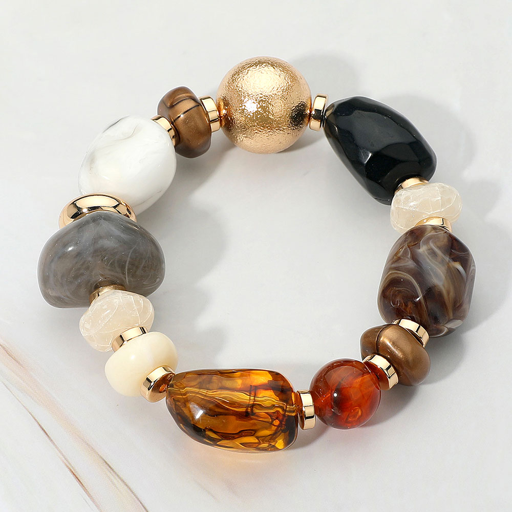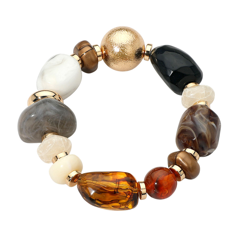 • This statement bracelet combines a mix of smooth and textured beads with subtle metallic touches, creating a chic, earthy appeal. Its elastic stretch design ensures comfort and versatility, making it the perfect accent for both casual looks and elegant ensembles.