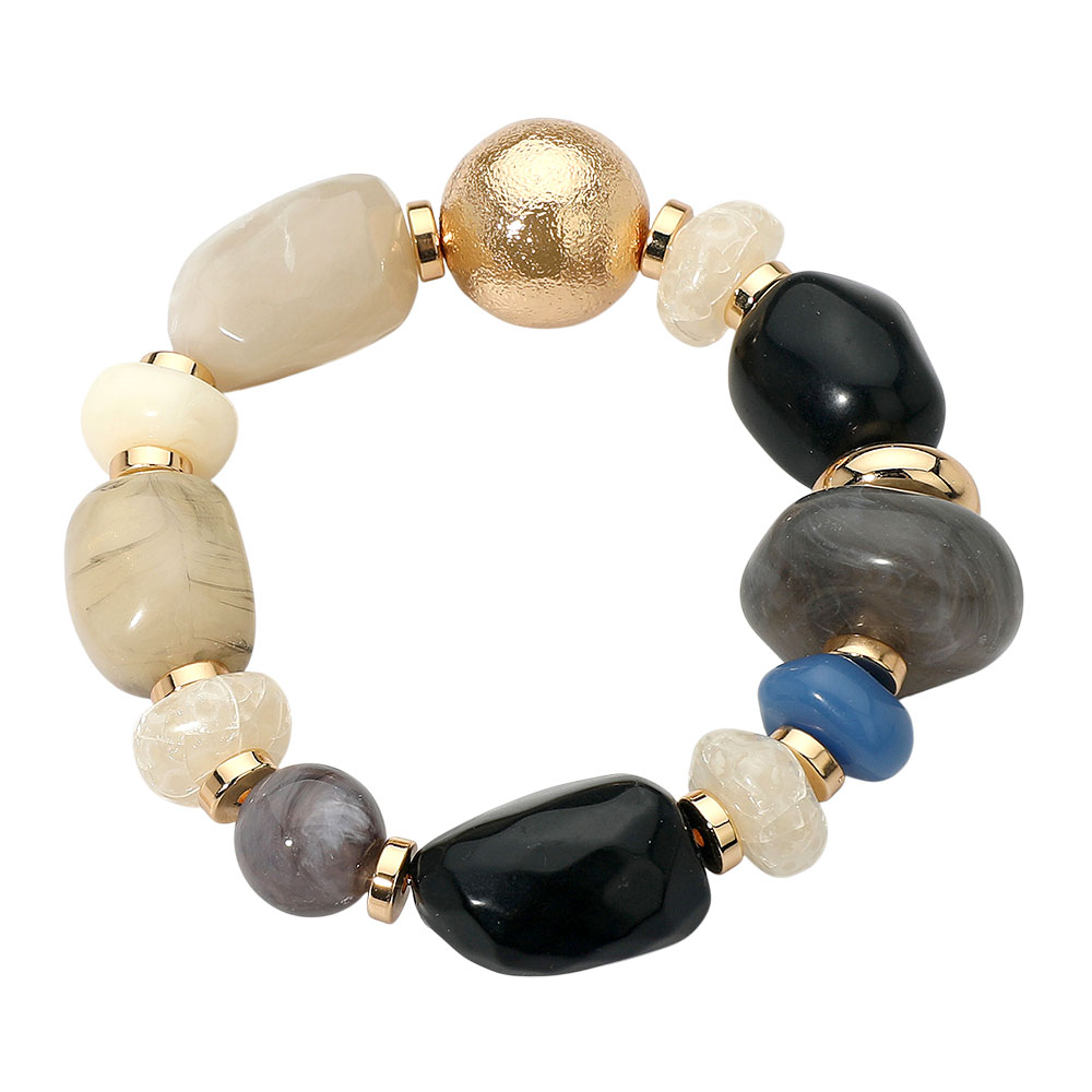 • This statement bracelet combines a mix of smooth and textured beads with subtle metallic touches, creating a chic, earthy appeal. Its elastic stretch design ensures comfort and versatility, making it the perfect accent for both casual looks and elegant ensembles.