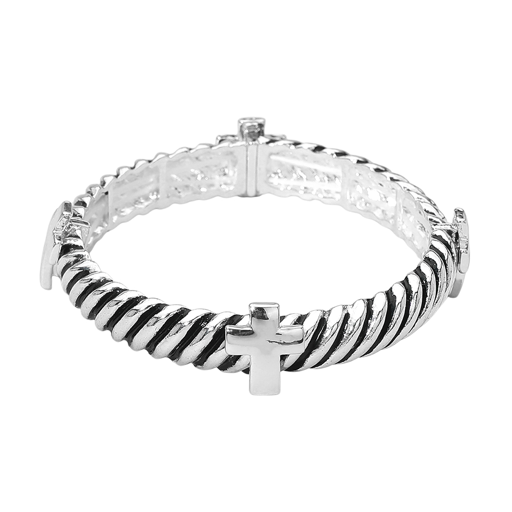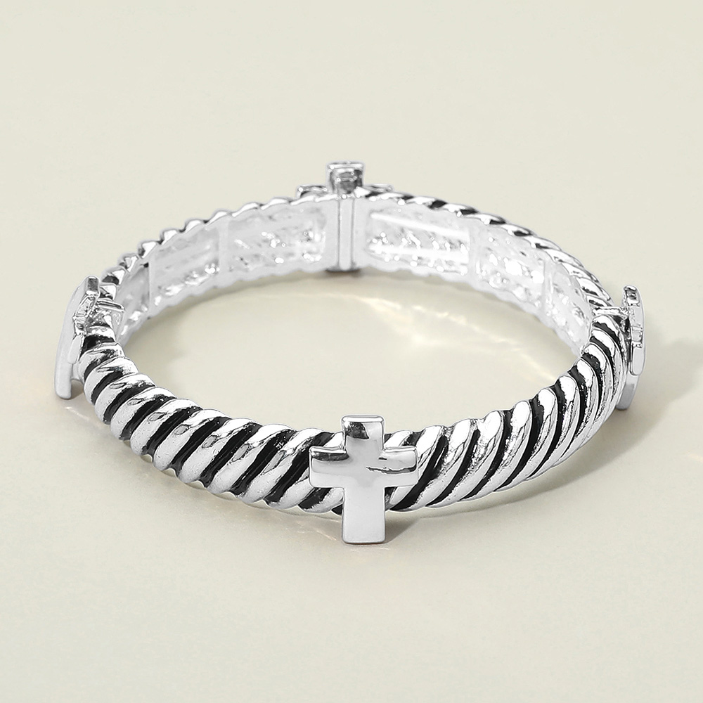 • This textured stretch bracelet features a raised cross accent paired with a sculpted band for a meaningful and stylish look. Designed for comfort and everyday wear, it’s ideal for boutiques offering faith-inspired accessories, giftable jewelry, and versatile pieces that blend symbolism with modern fashion appeal.