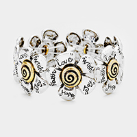 "Faith Hope Love Joy Wish" Metal Flower Stretch Bracelet