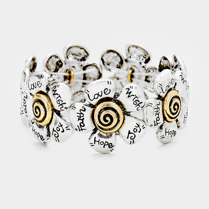 "Faith Hope Love Joy Wish" Metal Flower Stretch Bracelet