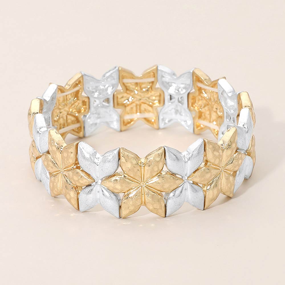 Geometric Floral Metal Beaded Stretch Statement Bracelet