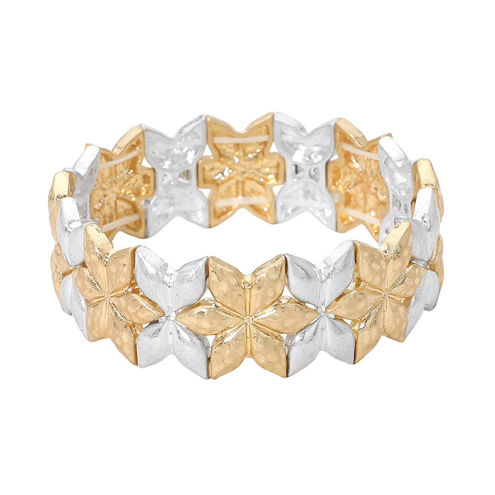 Geometric Floral Metal Beaded Stretch Statement Bracelet Geometric Floral Metal Beaded Stretch Statement Bracelet