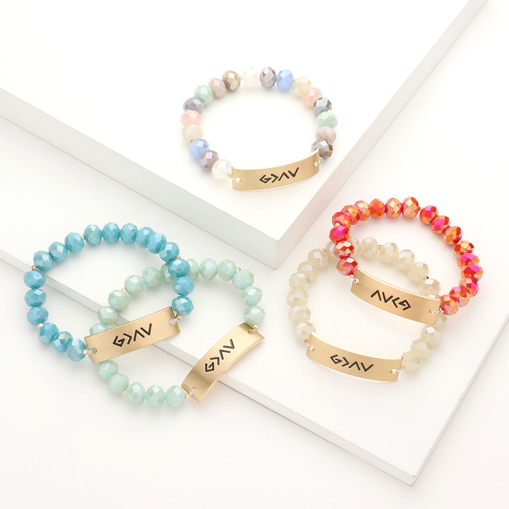 God is Greater Than The Highs And The Lows Metal Bar Faceted Beaded Stretch Bracelet