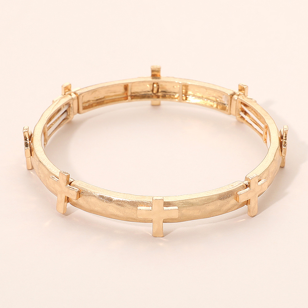 Hammered Brushed Metal Cross Accent Stretch Bracelet Hammered Brushed Metal Cross Accent Stretch Bracelet Hammered Brushed Metal Cross Accent Stretch Bracelet