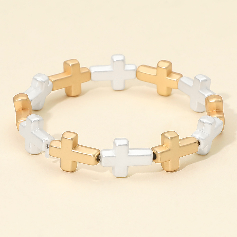 Metal Cross Beaded Stretch Bracelet Metal Cross Beaded Stretch Bracelet Metal Cross Beaded Stretch Bracelet