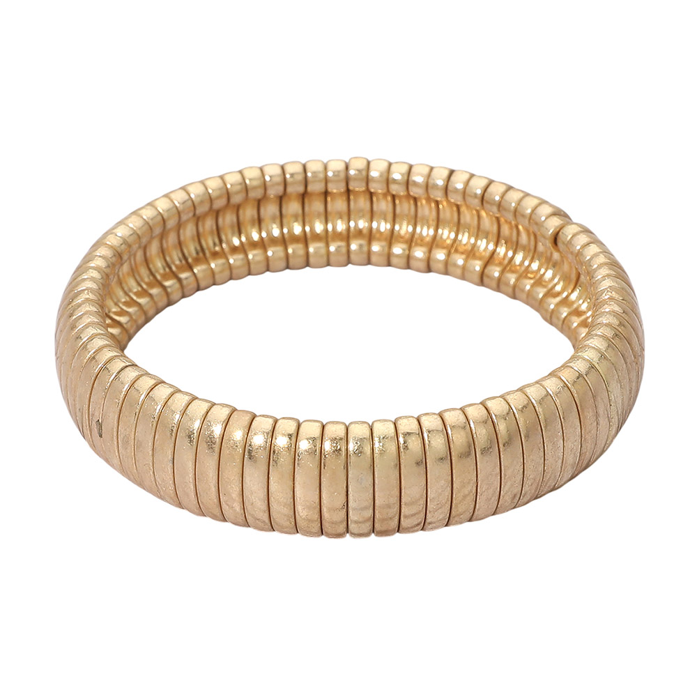 Details • Size : 0.6" H • Stretchable • This ribbed stretch bracelet features a sleek, sculpted silhouette that delivers bold texture and modern appeal. Designed for easy wear and versatile styling, it’s ideal for boutiques seeking statement accessories that elevate everyday outfits, layer effortlessly, and attract customers drawn to clean, fashion-forward jewelry designs. • Lead and Nickel Compliant